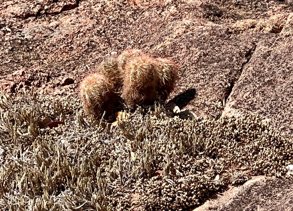 Mostly I just had fond memories of hiking this same trail soon after I met Lee and other hikes when all the interesting plants were blooming. The red rocks with lichen growing on them, the tiny plants that grow in puddles when it rains, and the hardy little trees are just so much fun to look at.