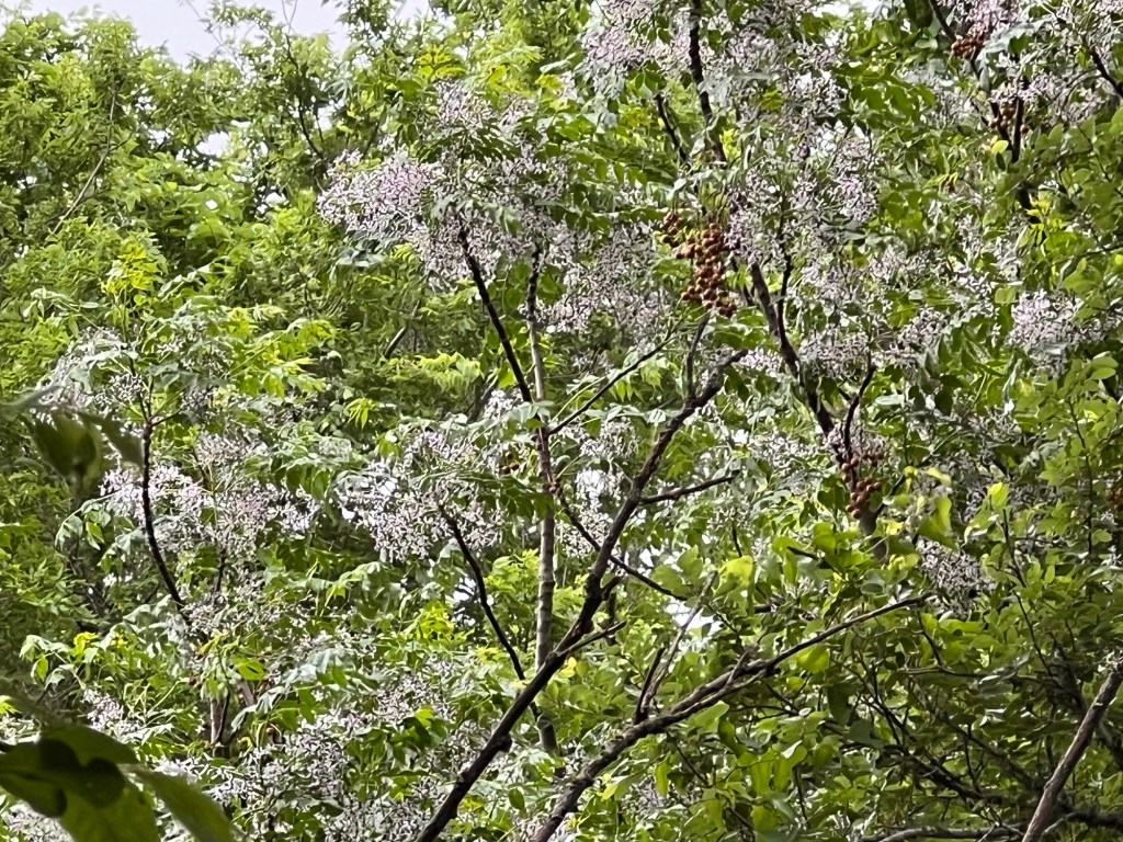 Chinaberry)not native)ElmPine in distanceThe hickories have huge leavesHickory nutTrees, lots of them