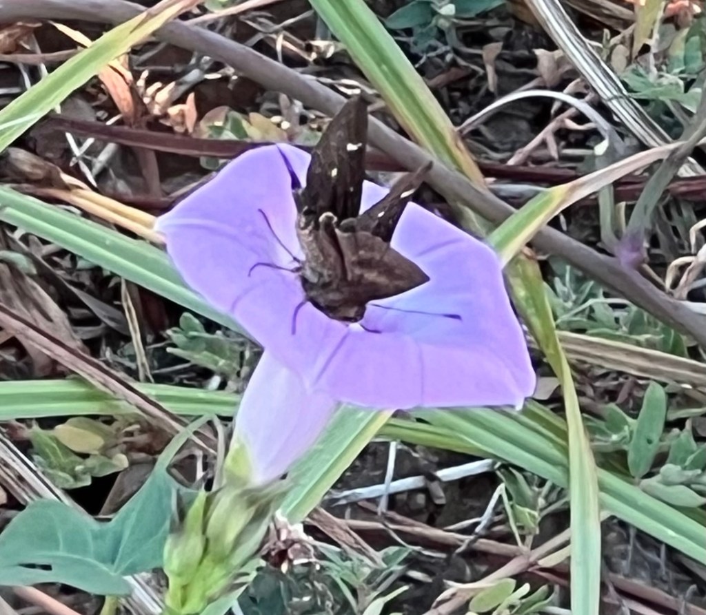 The motorhome got her. It’s a crambid snout mothCowpen DaisyTexas lantanaClimbing milkweedMilkweed podsA type of syrphid fly, Northern Plushback Bunny hiding its head because it’s not a pollinator.