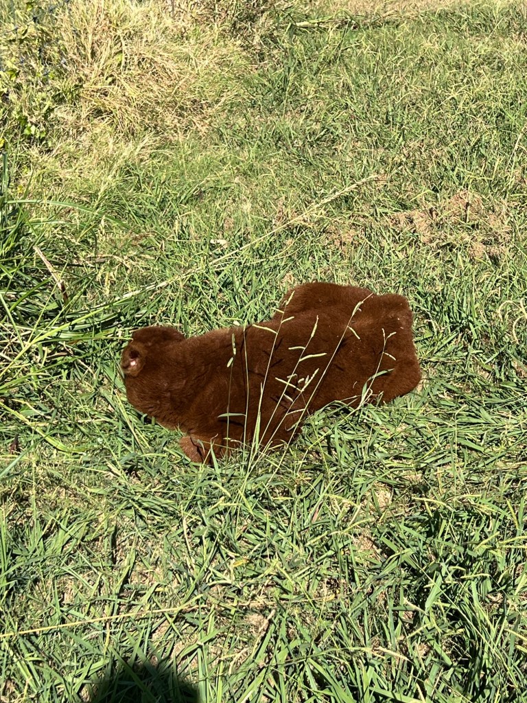 Oh my gosh, no! It was a newborn calf! On our side of the fence! It was doing the classic baby calf thing of laying low and not moving. I knew it was just born, because Tyler V tags new ones as soon as he finds them and he’s looking at least twice a day right now.