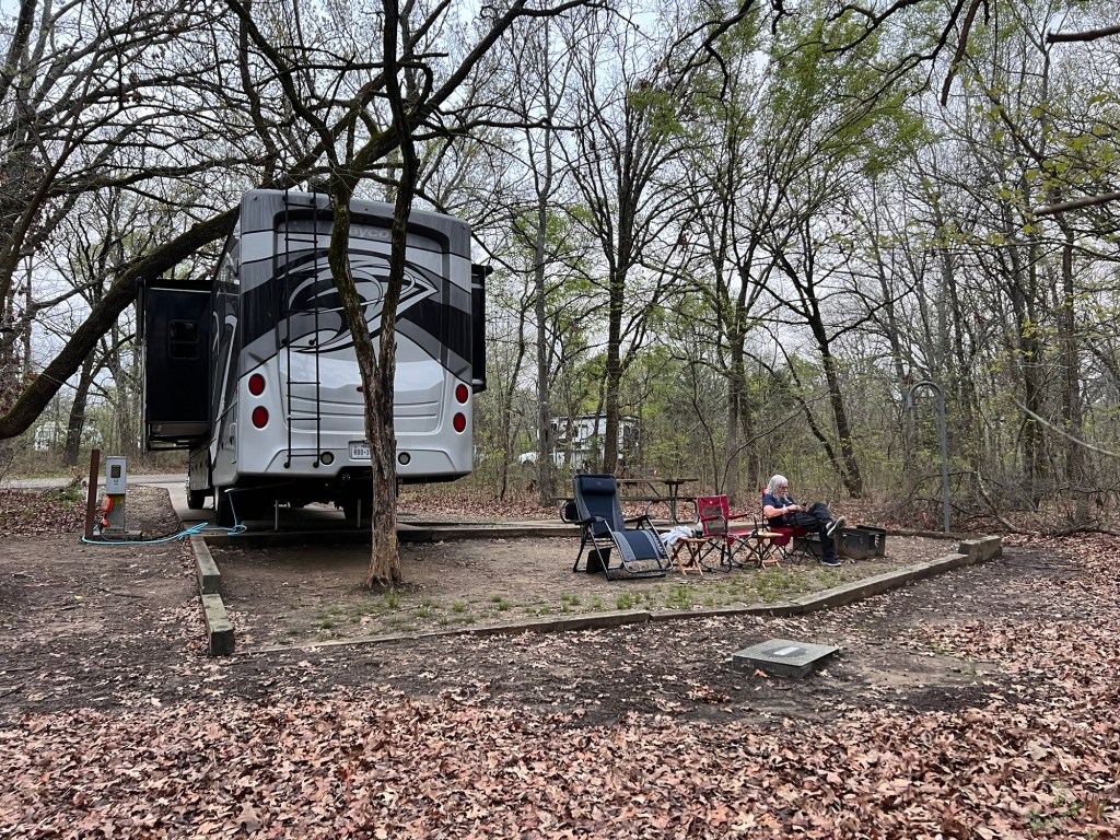 It was iffy whether we’d make it here. Once again there were torrential rains, but this park wasn’t hit too badly. On the way down here, though, we passed by a lot of fresh hail and wind damage. I’m glad we missed it. Trees and limbs were all over the roads and we passed at least two closures. Lee handled the motorhome very well, which I appreciated a lot.