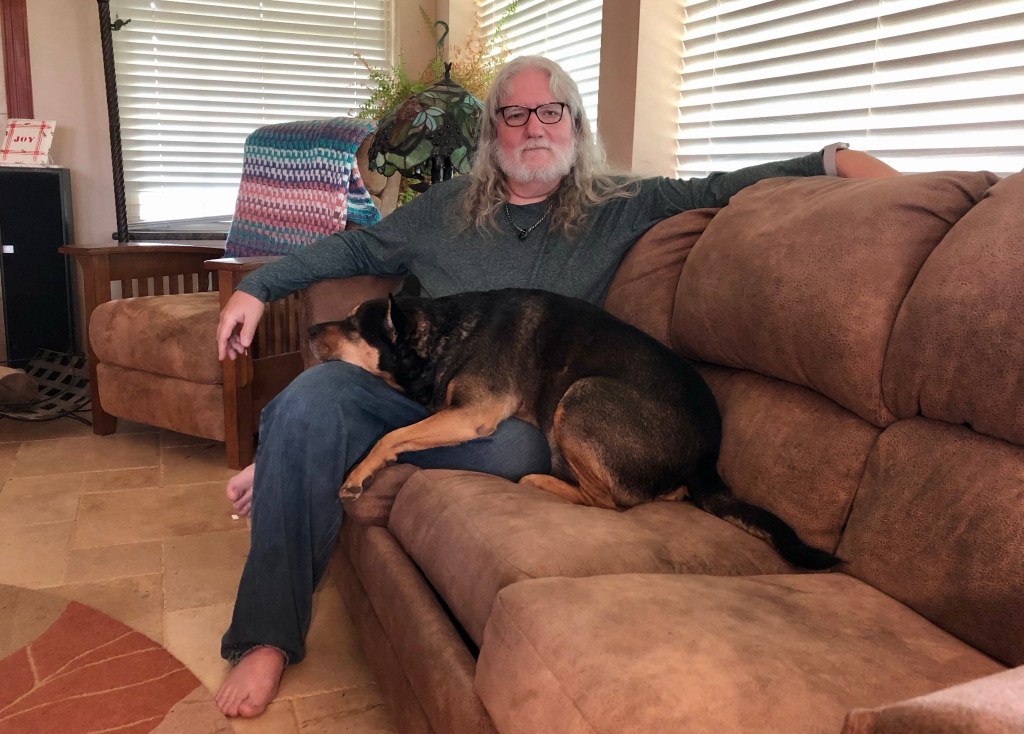 That Harvey. He really likes laps these days, especially Lee’s. And once he’s draped across you, you aren’t going anywhere for a while. I guess love is also a large wet dog.