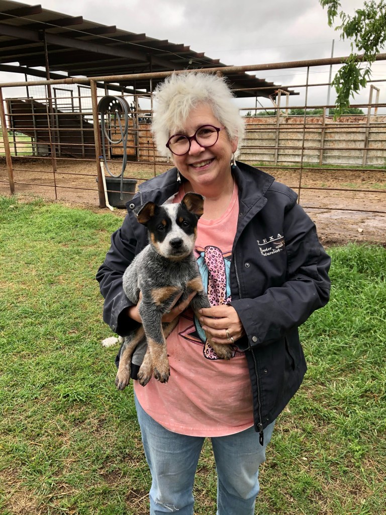 There’s been a lot going on in the pet department around our ranch community. The first is good news, which is that right now there are two puppies to enjoy over at the neighbors’ house. They use Australian cattle dogs as working animals, and the elderly matriarch (Tess) is no longer able to do much. So, they decided to allow their breeder friend to get puppies from their youngest female (Jess) and one of the breeders’ unrelated males. The two female pups and Jess came home from the breeder’s house this weekend, and I got to enjoy them. They are so soft at this age!