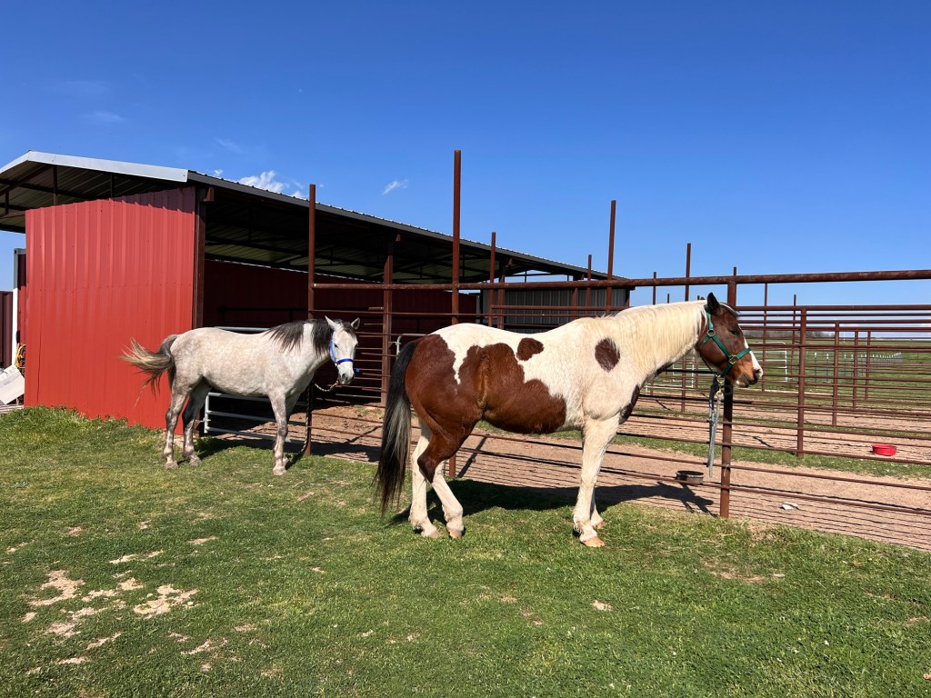 Horses were also challenging but do-able. Apache was a mess when I got him from the pasture so I had to wash him off. I think that helped. I was also able to get Drew haltered and ready to go to Tarrin’s safely.