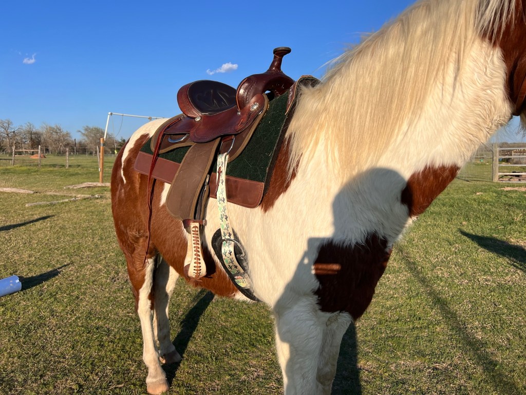 Aragorn and Apache managed to do their lessons, though. I got a lesson at putting on Apache’s new saddle pad, and we changed out his straps so he’s all green now. Snappy.