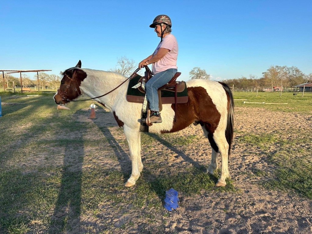 I am pleased with the progress my fine gelding and I are making. Tarrin purposefully got Apache annoyed so I could practice settling him down. Maybe this will help when he’s at Sara’s again. Still, he’s doing trot transition work very well and I’m proud of him (and me—lots of butt bouncing). Bonus: Tarrin gave me chocolate ale to take home! And nail strips!