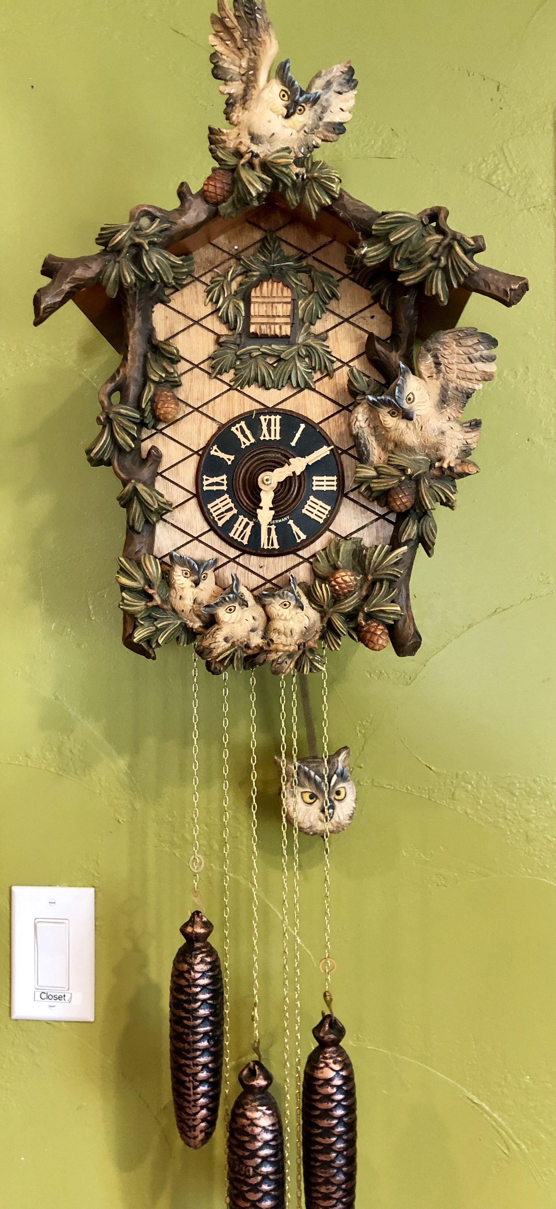 I love the pendulum owl’s eyes. And yes, I labeled all the light switches. Too many in the Hermits’ Rest house!