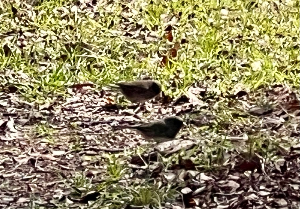 It wasn’t a great bird day, probably because I didn’t go out until late morning. But I did get to enjoy watching a flock of dark-eyed juncos feasting on cedar berries. I used to see them a lot in Illinois.