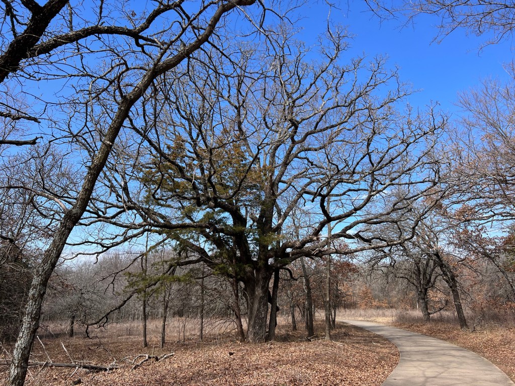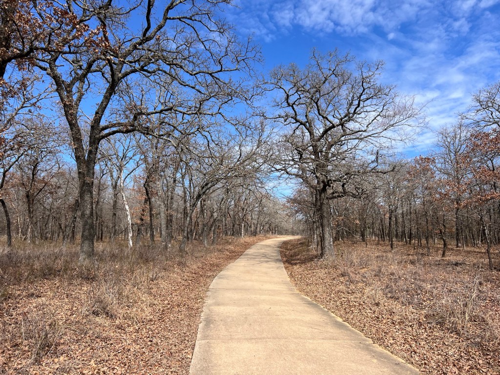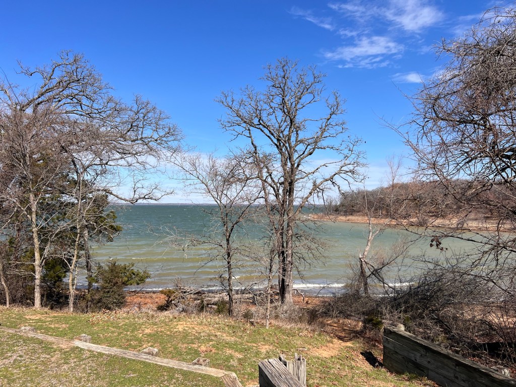 I say that because even though it was cold with a biting wind, I hiked the whole Randy Bell Scenic Trail and added a walk through the second, and very beautiful, camping area here at the Isle du Bois Unit of the Ray Roberts State Park. That’s a long name. I got 6 miles and 16,000+ steps in.