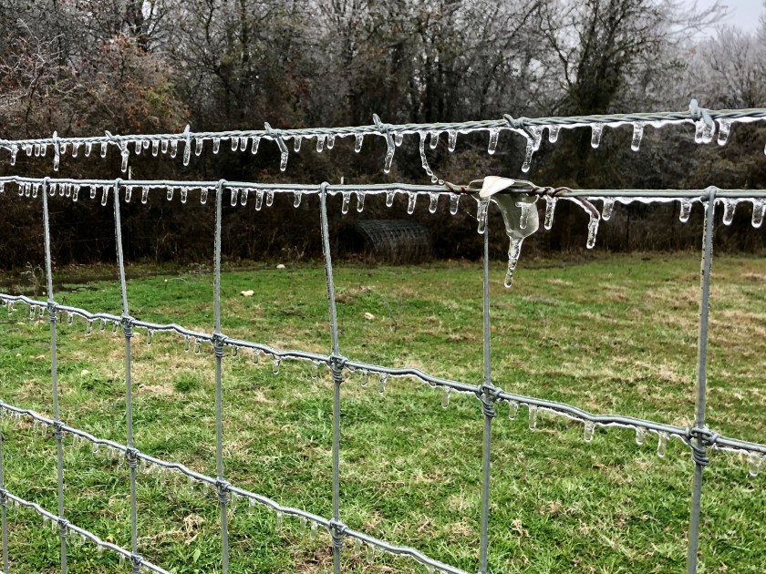 This is what I TRY to be, when I can. Like, right now puffed-up meadowlarks are flying around drinking water out of places where there is melting. And I have a lot of time to read and knit. Kathleen is the champion of not complaining ever, about anything. The power outage lets her use more candles, the ice formations in the field are pretty, etc. This is commendable, knowing what she’s actually dealing with and NOT sharing!
