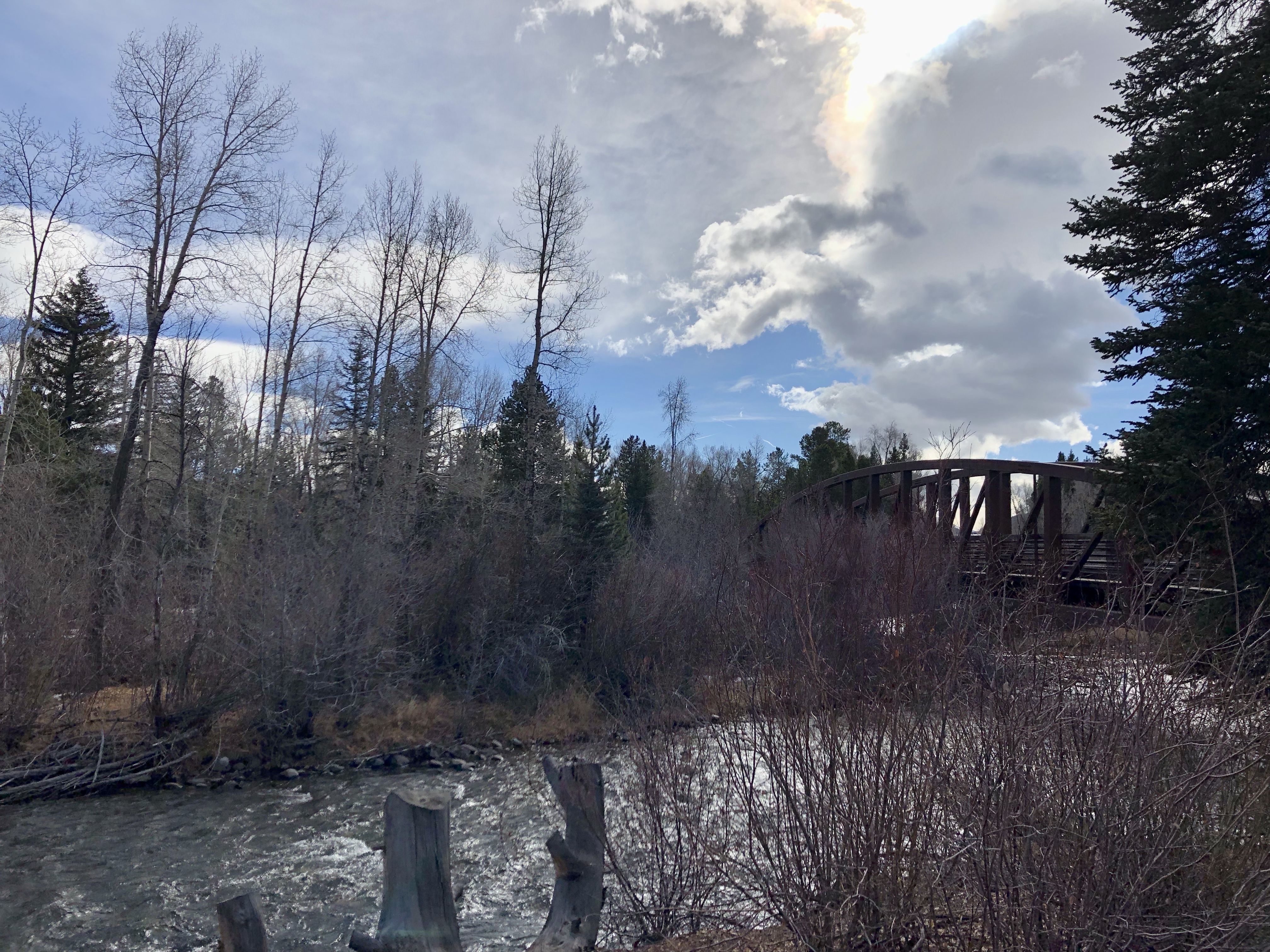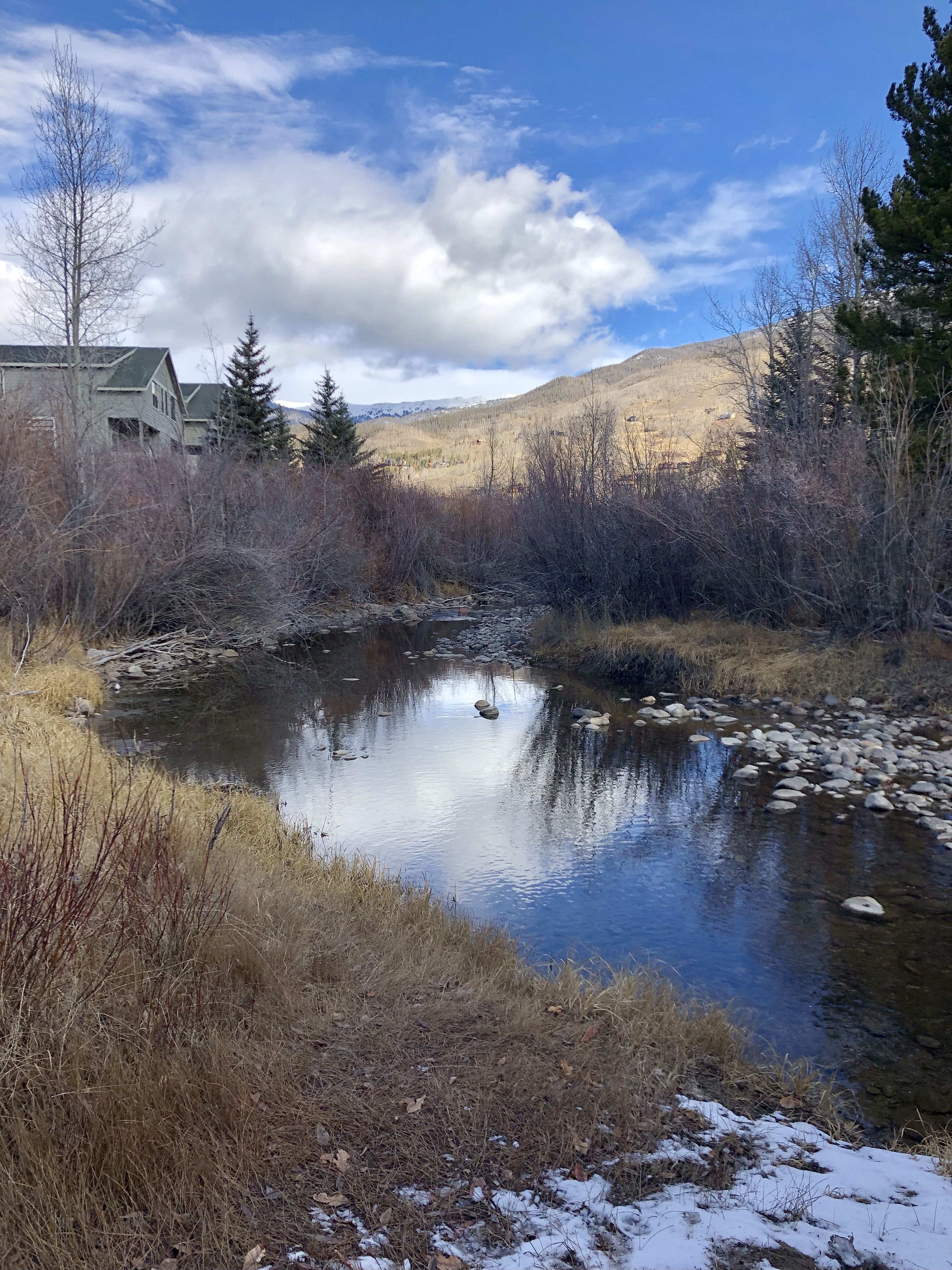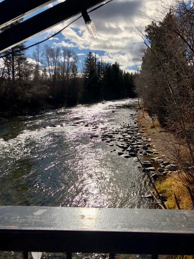 It was really cold last night, but warmed up with bright sun, so I decided to talk a walk at lunchtime. I wanted to do the path on the other side of the Blue River from downtown Breck, just to see what I’d see. It was a pleasant walk, and I took pictures of statues that the town has put up, as well as views of the river.