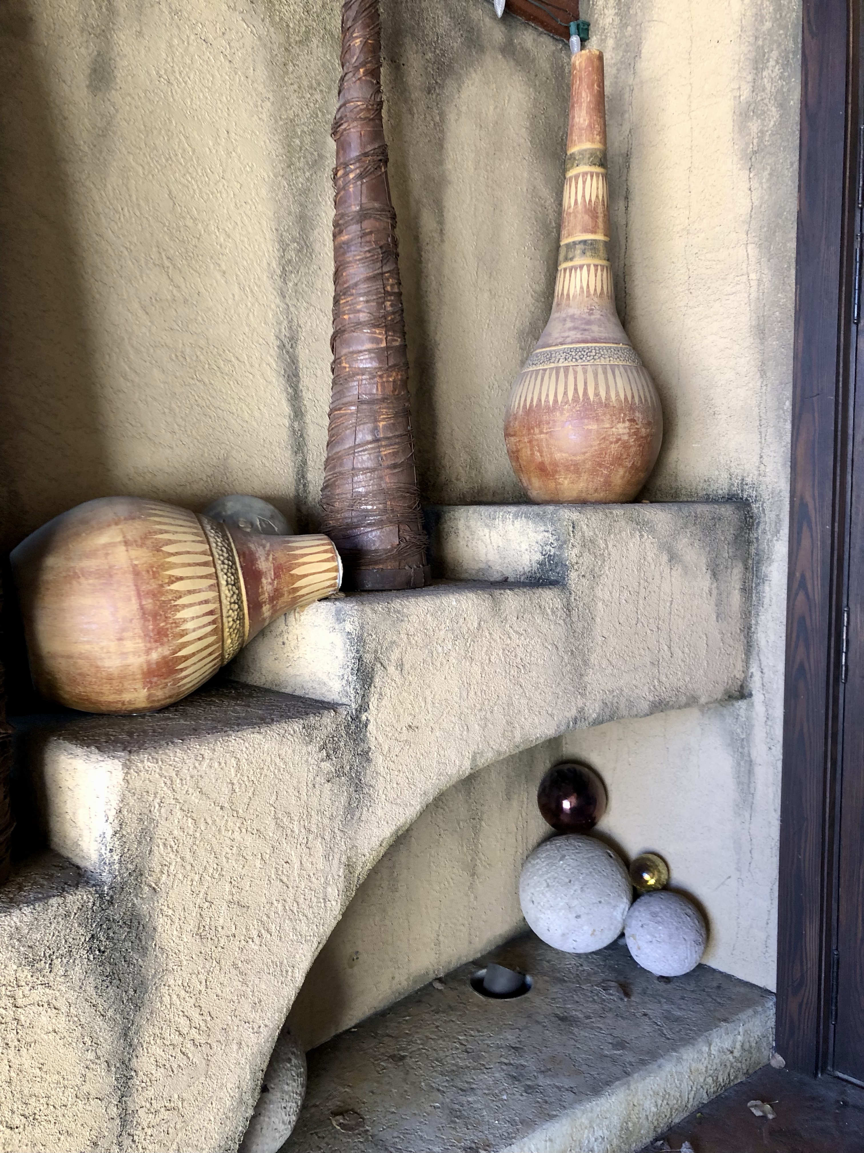 After the walk, we met Ken for lunch in a restaurant with really cool decor, the Red Mountain Grill. I’m glad we went, because it sure was cool from the outside. The décor was Mexican crafts on steroids. It looked way more Mexican than the Mexican restaurant last night. But it wasn’t an exclusively Mexican restaurant.