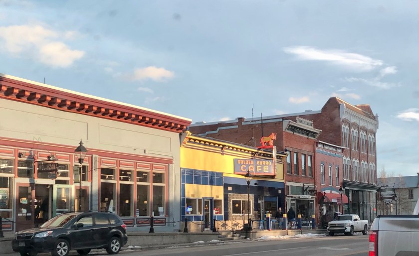 Yet another day of fun and new sights happened yesterday, which was good. I’d gotten irritated that the Cowboys football game stopped showing on the television here, because the team was doing “too well.” I went off to climb the hills around here, and just when I discovered it was perhaps too muddy, Cathy asked if I wanted to go with them to Leadville, Colorado to have dinner at one of their favorite restaurants.
