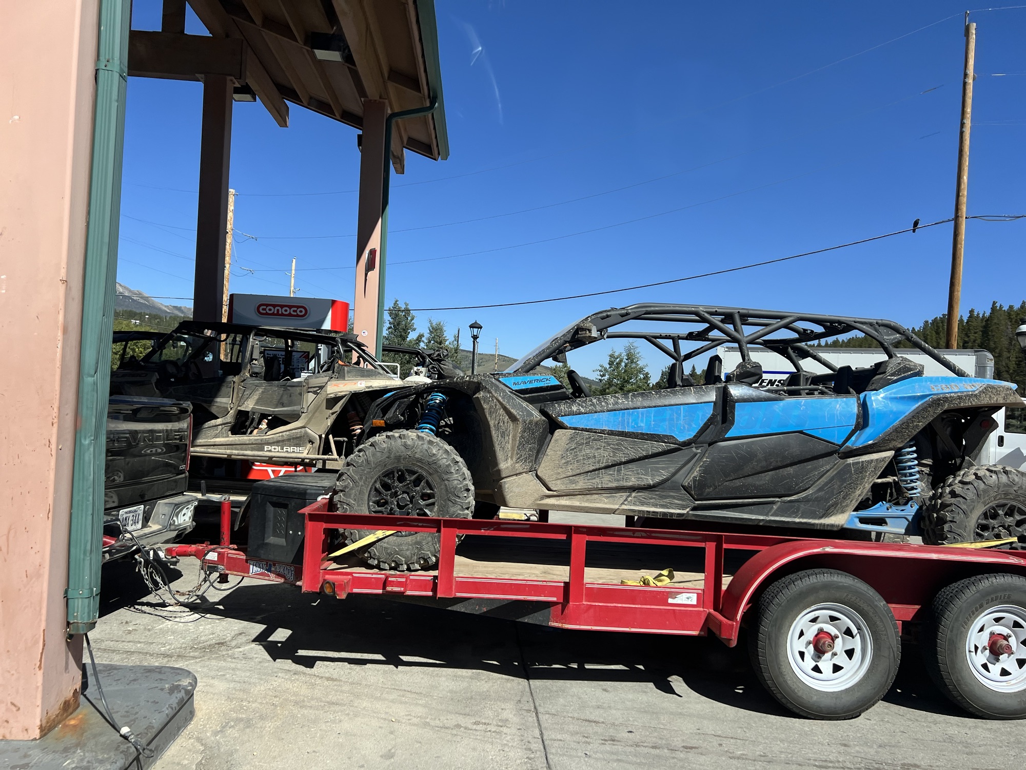 We had a hard time getting from my condo to the Dillon/Keystone area, because it’s a holiday weekend and the gas stations were full. The one where we finally got gas had a big convoy of huge trucks towing big off-road vehicles. There were at least six of them at a small gas station. Most had Mexican license plates. Serious off-roaders!