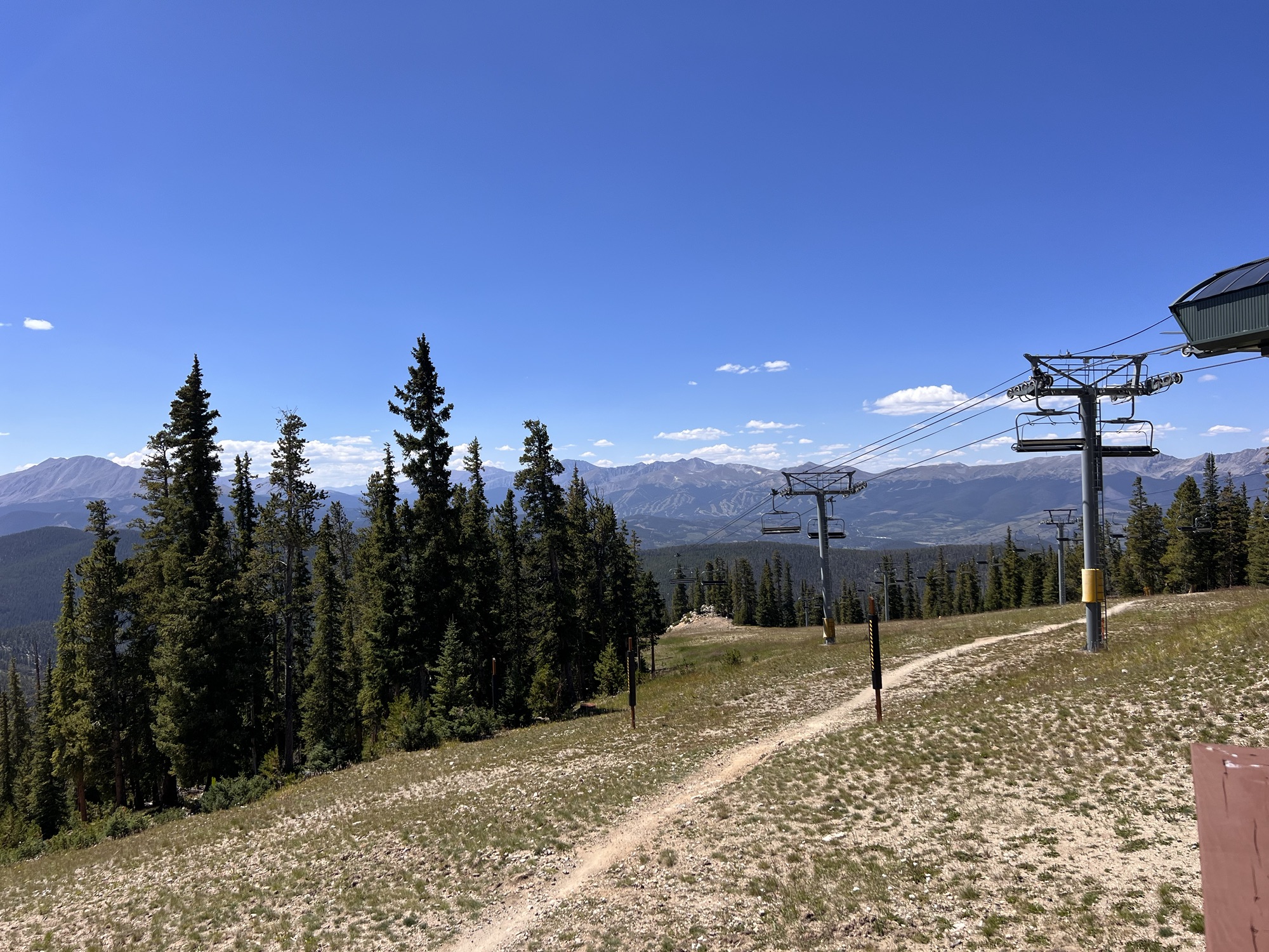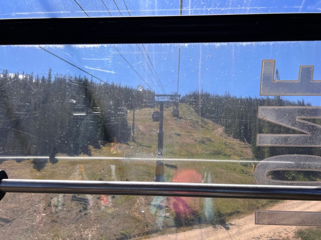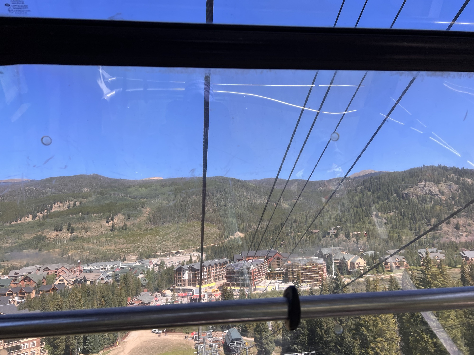 We finally got to the resort area and plowed through the exhibits (luckily we were early and it wasn’t rocking too hard). Then we went up! The Keystone gondola goes way up. It’s fun watching mountain bikers snaking down below us.