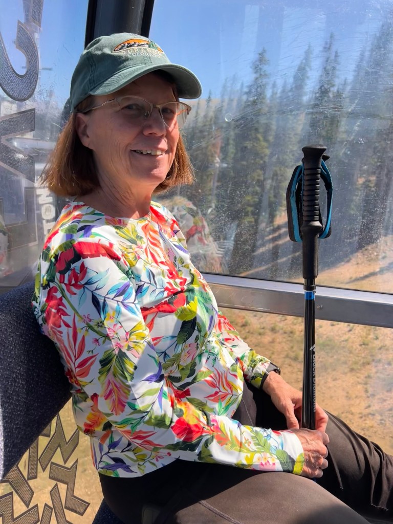The views at the top of the ski area were amazing. I can see why Cathy likes to ski here so much. The weather was beautiful, too, neither hot nor cold. And it wasn’t too windy.