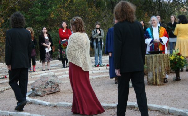 People who’ve known me since 2008 will know this, but I’d like to share anyway. What else is a blog for? We got married just before sunset on the labyrinth at Live Oak Unitarian Universalist Church. That was special to me, because I helped build the labyrinth.