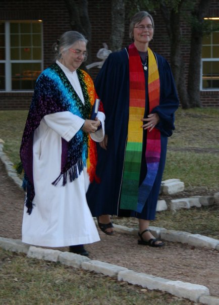 We had two wonderful officiants, a long-time pagan UU friend (Linda) and one of the ministers at our church (Kathleen). We had beautiful vows that Linda helped us write.
