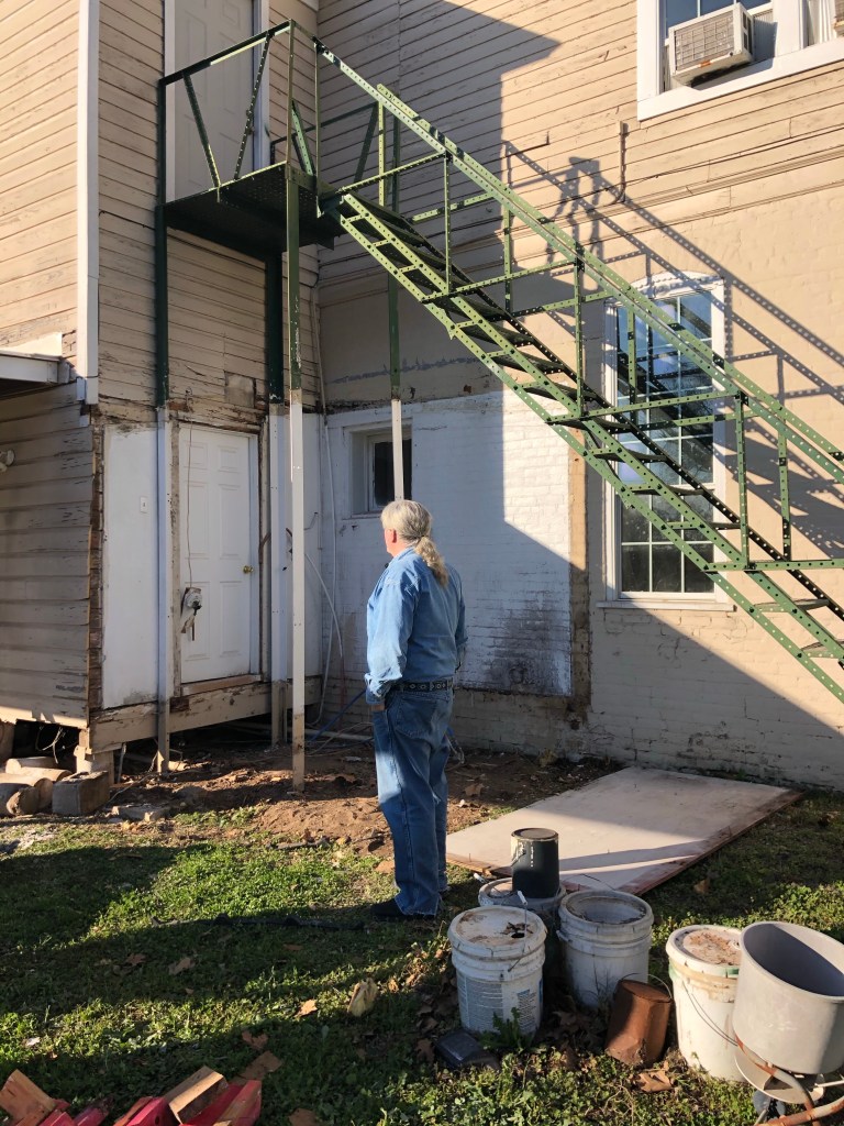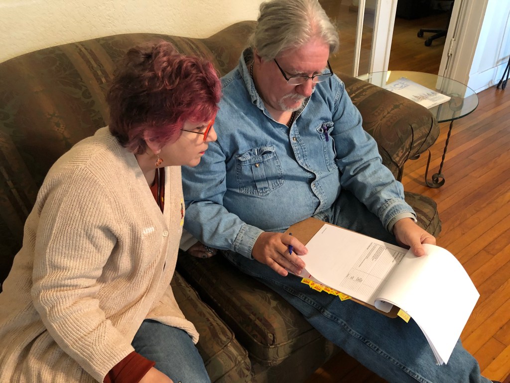 Carol and Sierra rest during their brief stop in Cameron for the closing.