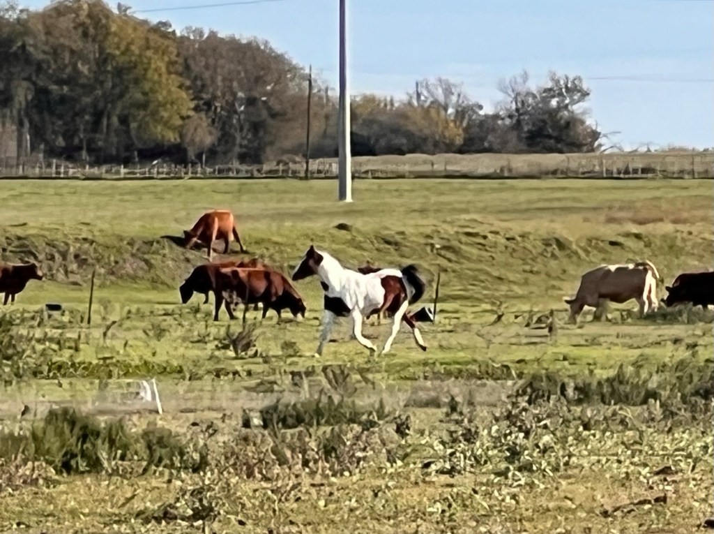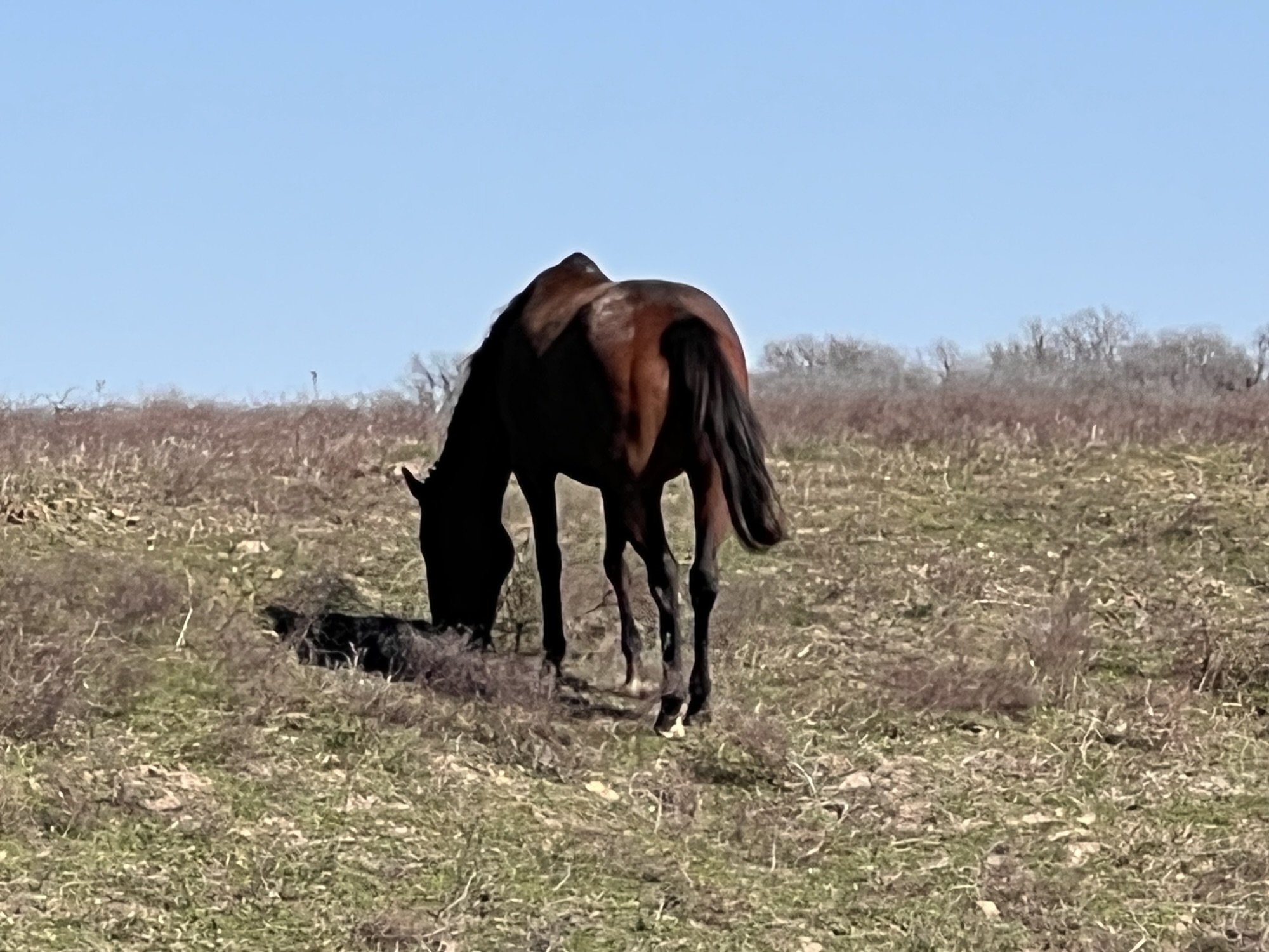 Eventually Apache thundered back and forth until they all gathered around the hay bale. It’s nice to watch them play, and I’m glad they have the space to do so.