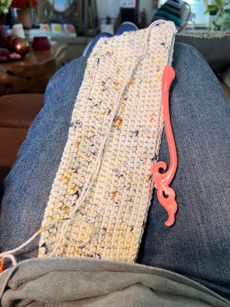 Hello! I’m here, just without much to say. There’s so much going on around me, both good and challenging, that it’s hard to focus on a topic. Honestly, I want to meditate all day to get away from the competing distractions, but I know meditation shouldn’t be an escape. So, I’m crocheting.