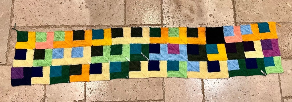 I keep thinking I’ll be tired of temperature blankets. This is my third using the same colors for the temperatures. I like the size of this year’s. It actually makes a good lap blanket already. I guess we will see what I come up with.