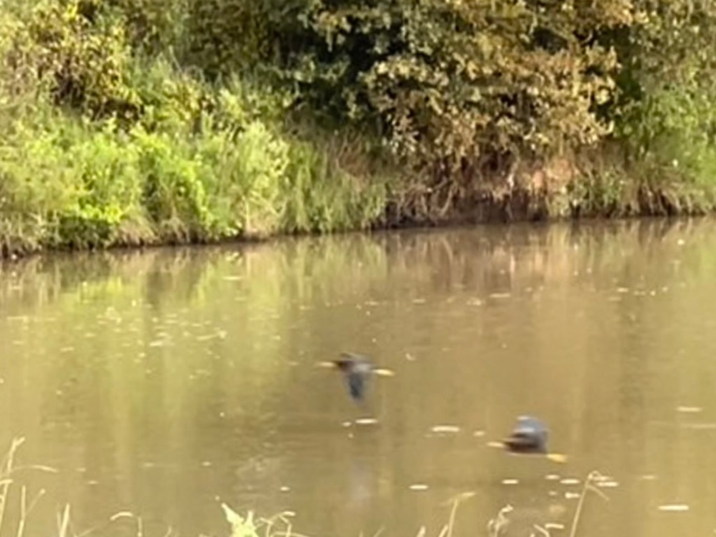 SquabblingTwo flying back to the nest. MomZipping across the pond. Its wings hit the water. Green Heron family