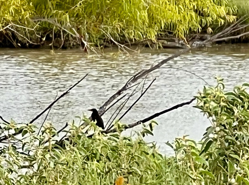Now, on to the day off. I felt so good after a very long night of sleep, that I decided to take it easy today. I spent a lot of time birding, including being startled by the blue heron twice. It’s been picking off fish in the dwindling overflow pond, and neither of us can see the other until we’re on top of each other.