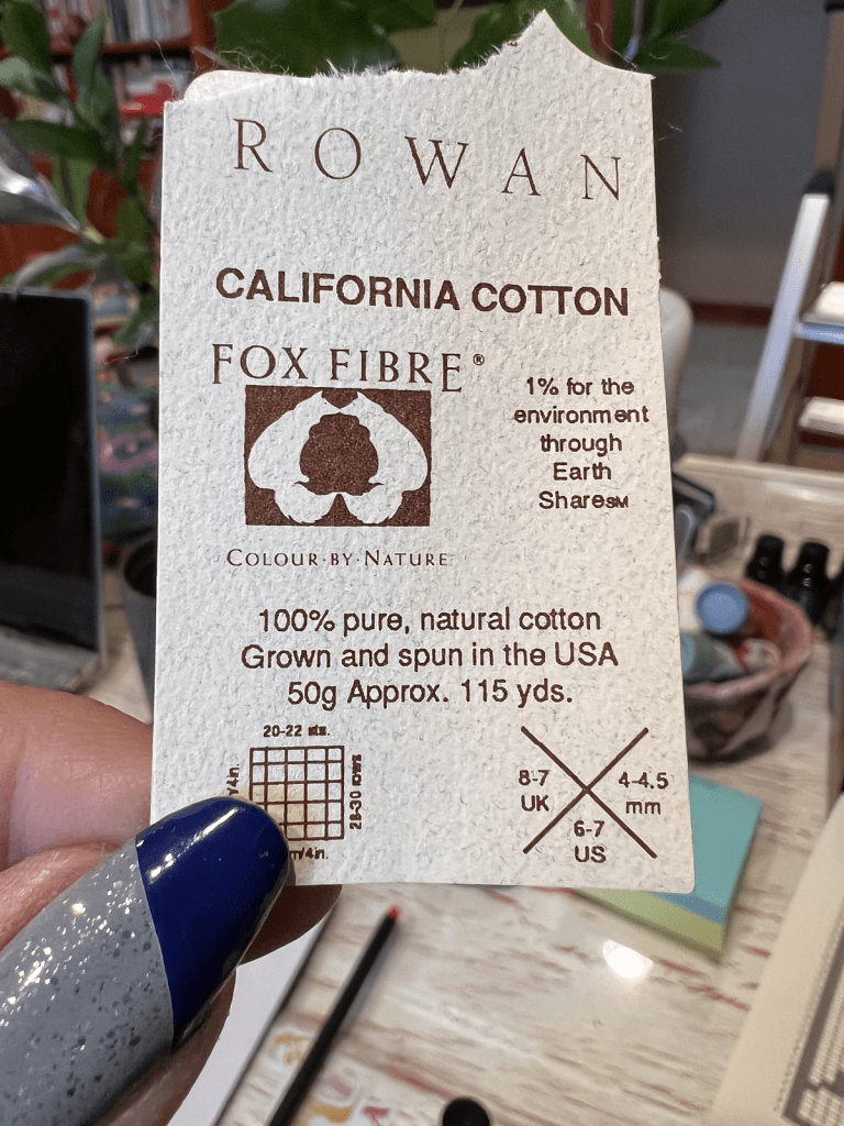 Now for the trials. I didn’t have a new project set out for an immediate start (I want to do a temperature blanket using mitered squares for high and low temperatures of the day but haven’t picked yarn or colors – I made a small one for the Tempestry project a few years ago but seem to have neglected to upload it to Ravelry). What I did have was some organic cotton yarn that had been sitting in its original box for many years, probably close to 30 now. It popped up when unpacking stuff from my old house and was nagging me.