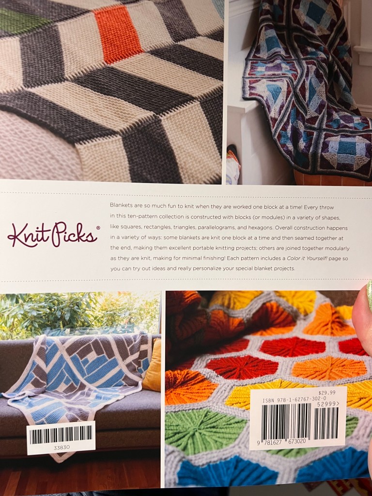 The second book is from KnitPicks, Block Party: Modular Blankets (2020). You can probably guess why I got this one. I do love modular projects. Yum. The cover drew me right in.