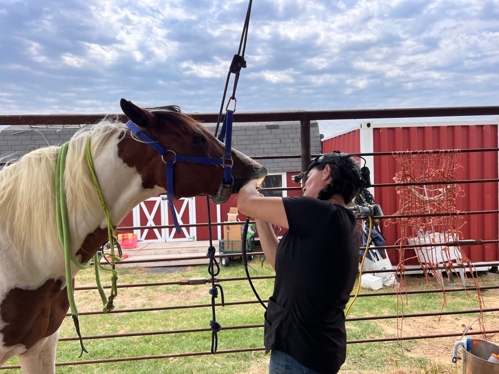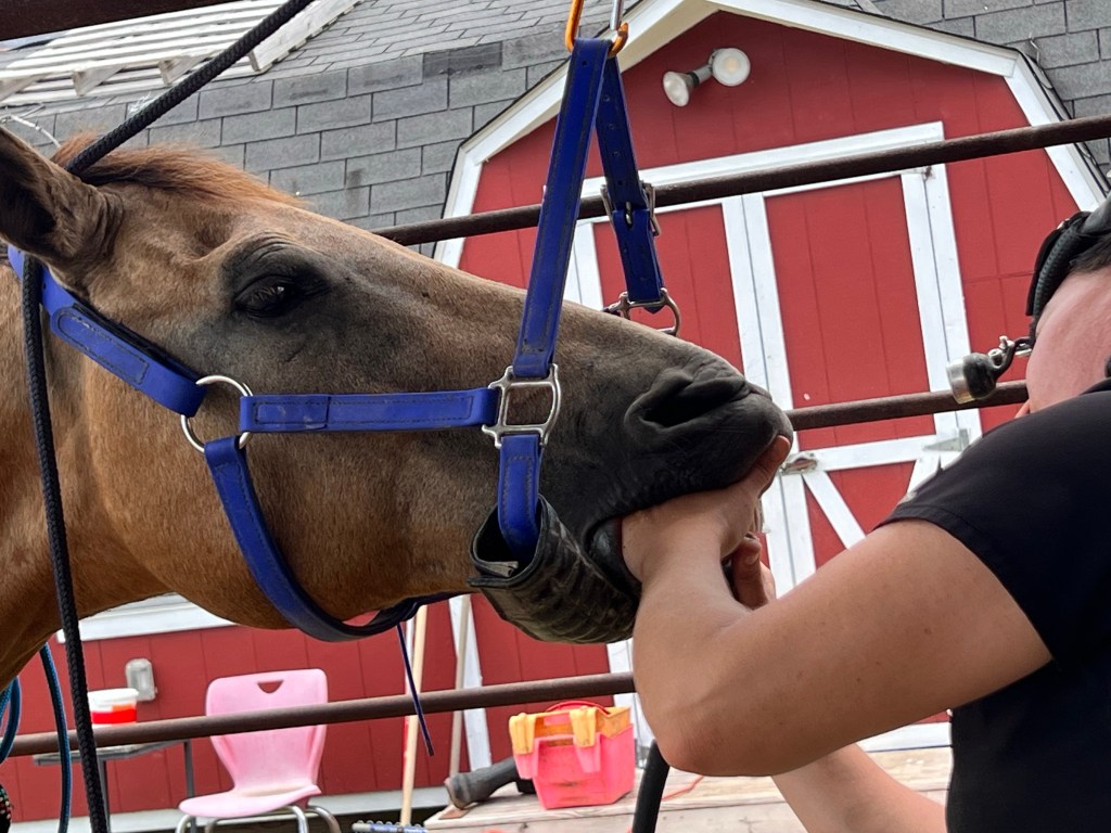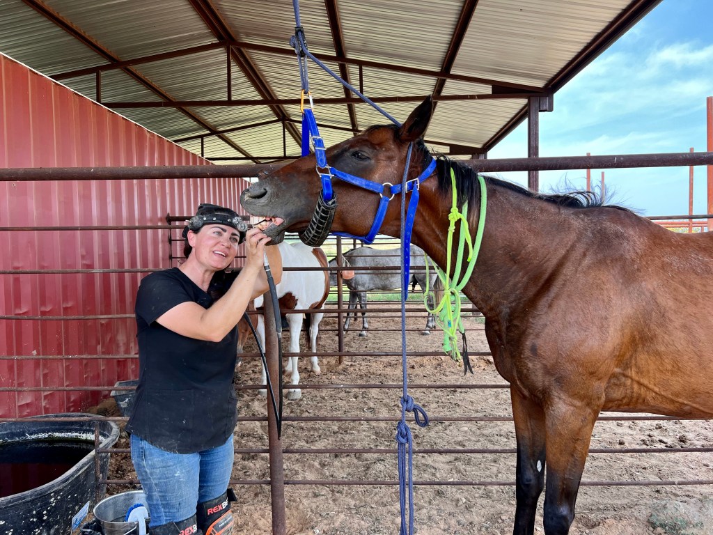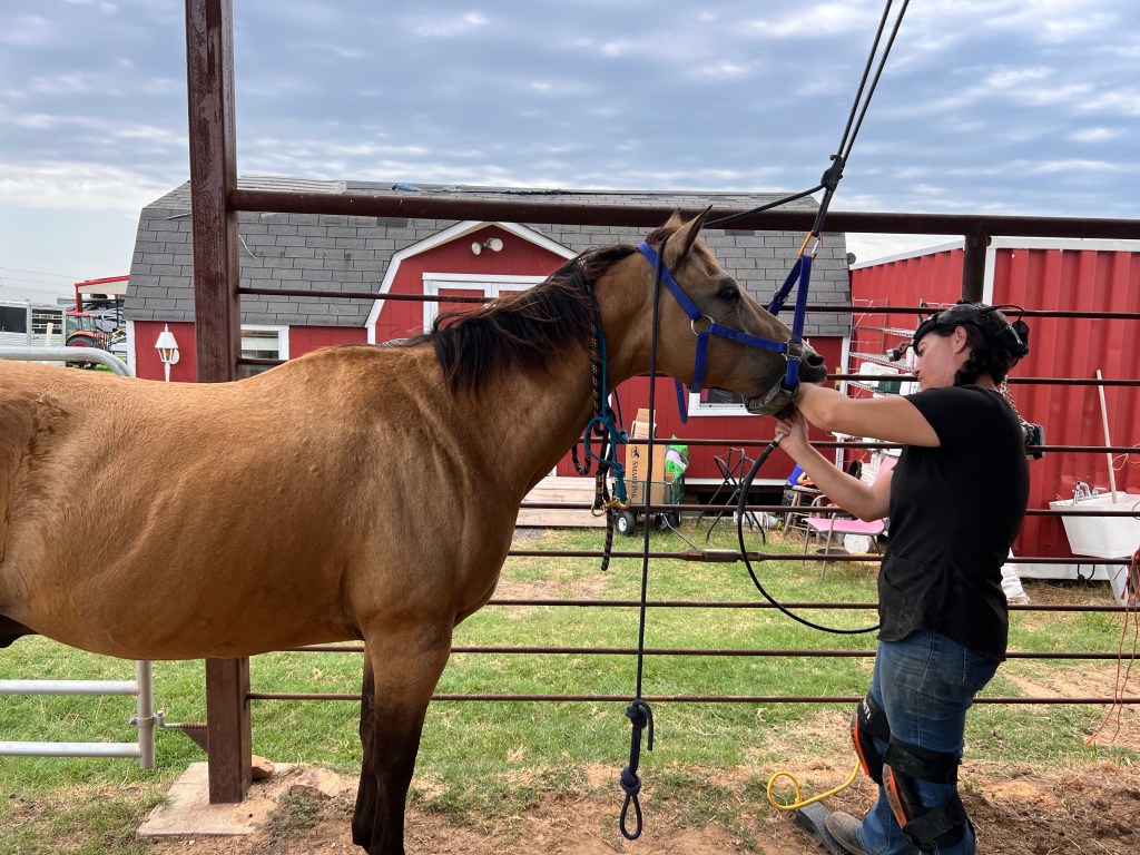 I was glad to see Apache still doing fine, other than a bit sensitive around his face. Funny thing. I raised up his jump as Tarrin suggested. Apache zoomed towards it, then saw it was higher. He put on his brakes and slid in the muddy ground to stop. I’ll have to work on that!