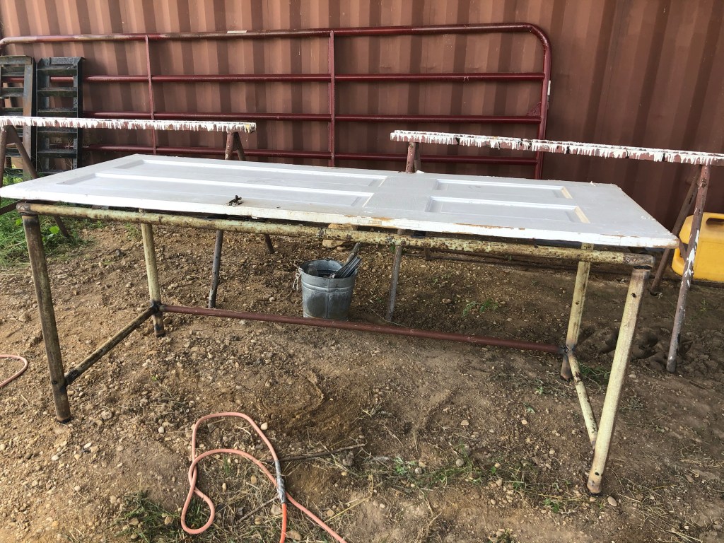 The highlight was when he put the old door on the rustic frame. Wow. So cool. It will look amazing with the big piece of glass on top.
