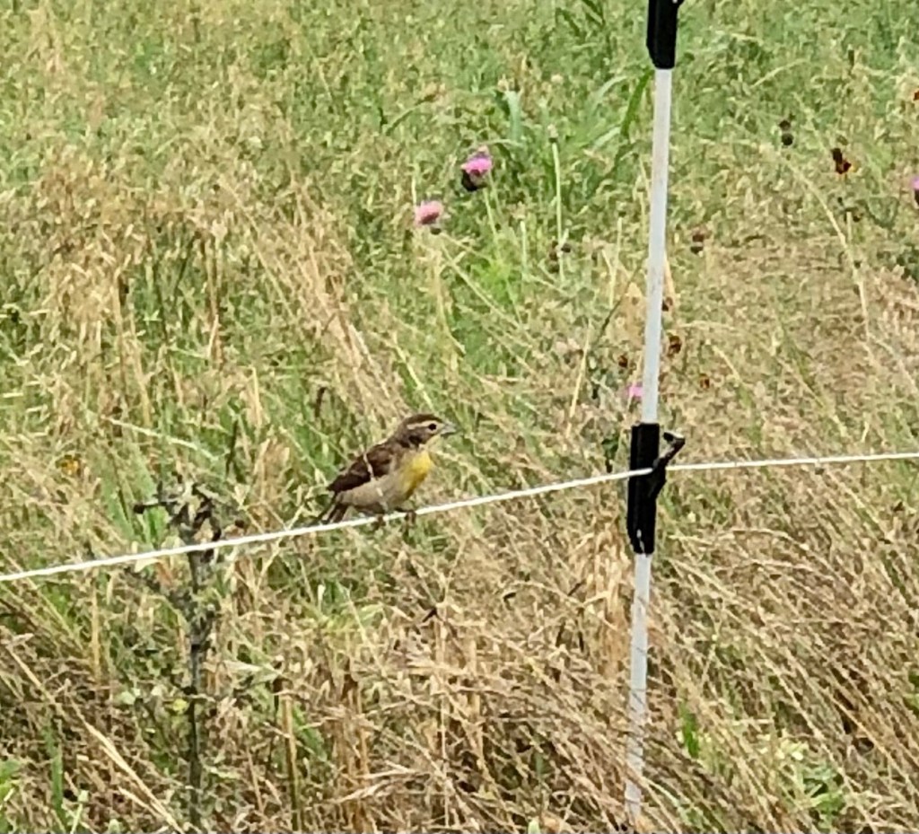 In years past I’ve mentioned my fondness for the migratory dickcissel birds that come through here at the Hermits’ Rest each year. They’re small sparrow-sized birds with big sound and friendly personalities.