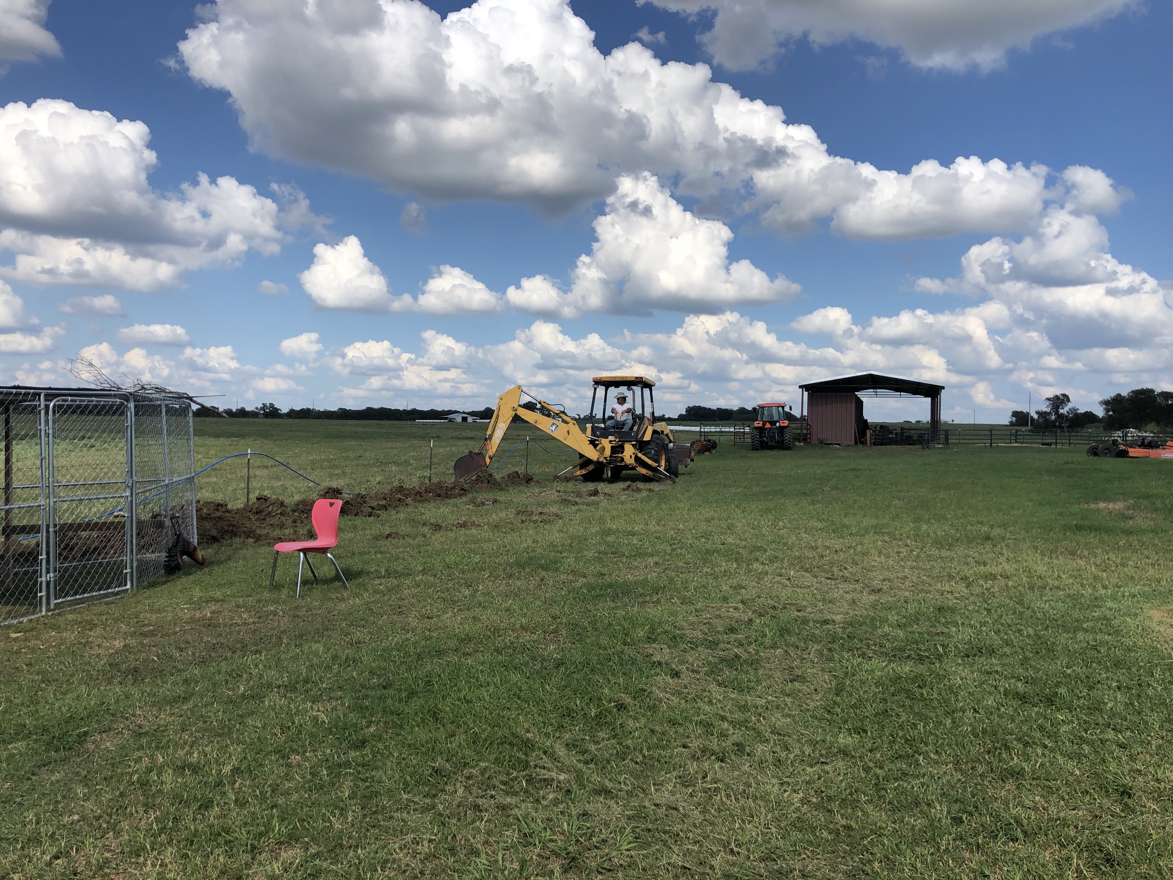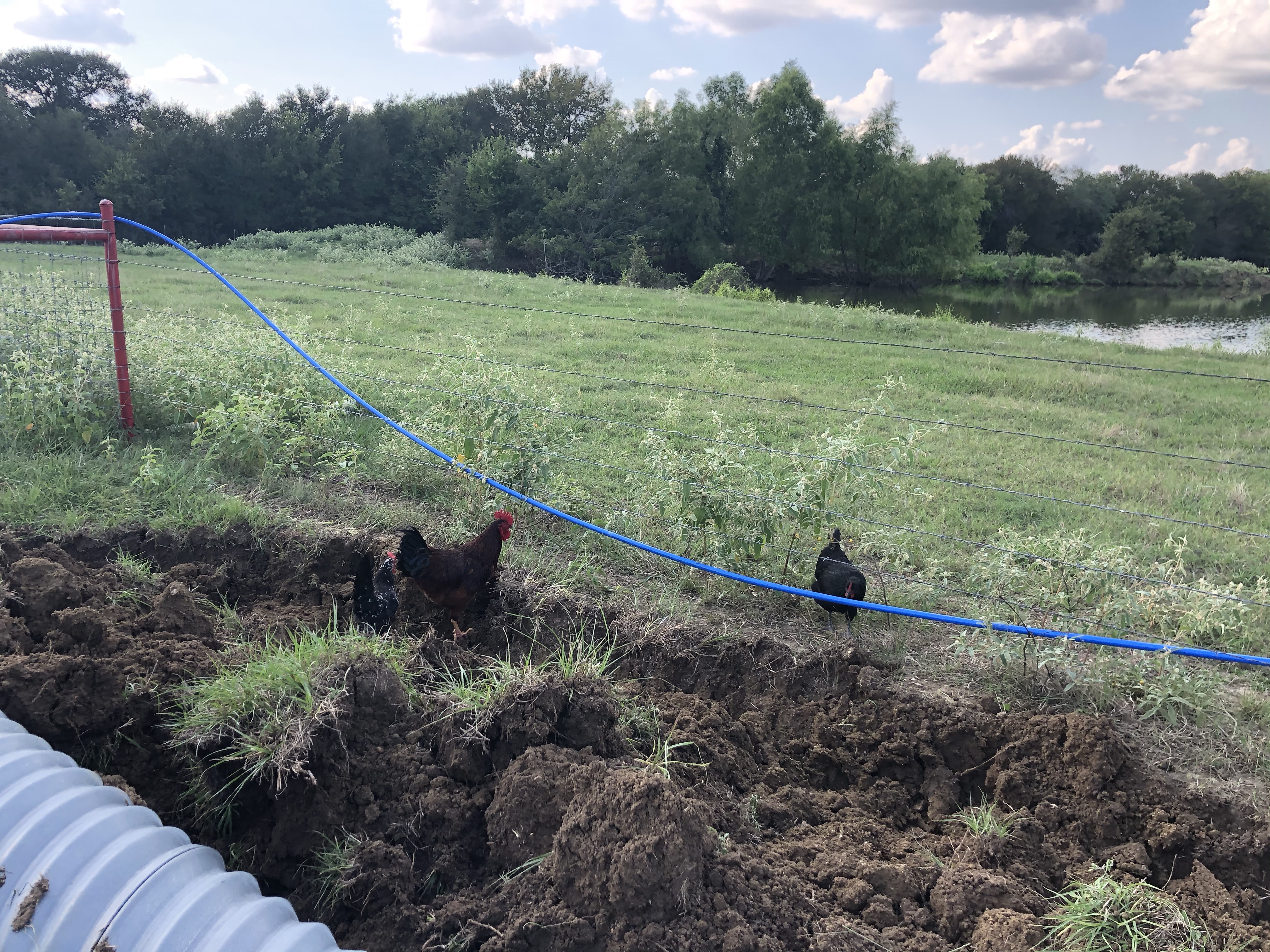 Today Chris and his dad did a lot of work on a new water line for the chicken coop and new barn area. That required digging a trench.