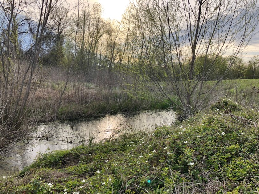 The Hermits Creeklet with budding willows and dewberries.