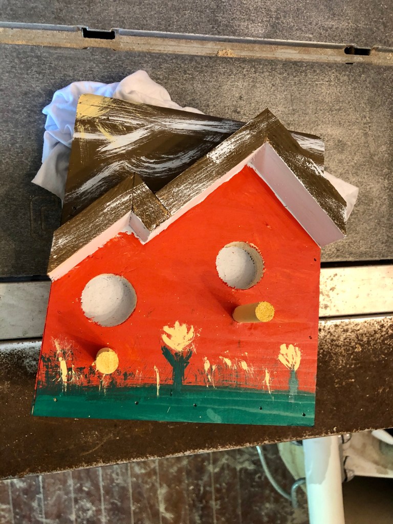 And oh yes, I’m helping more. My other big contribution was putting some birds on my little bathroom birdhouse. That’s sweet!