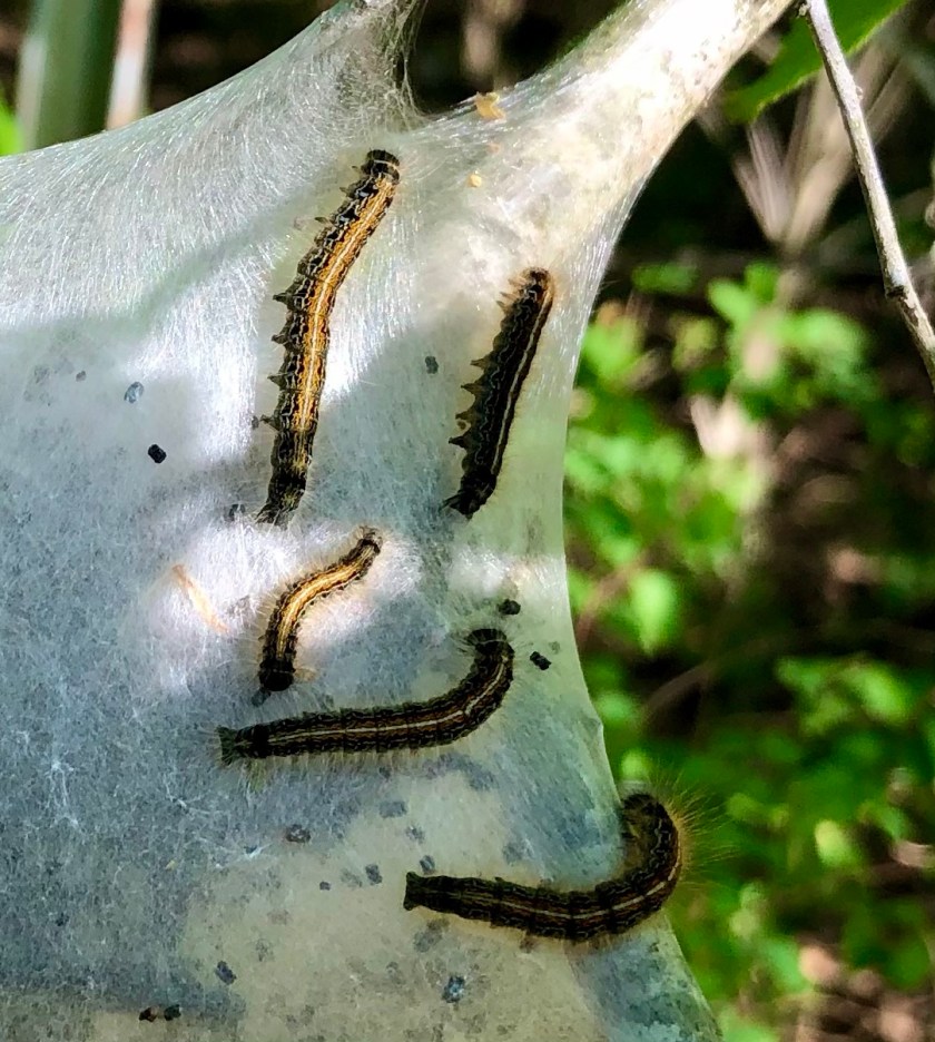 While looking for life on the oaks I couldn’t help but see some more life in neighboring shrubs. There were a few very interesting Eastern tent caterpillar nests. These have only one generation per year, and from the number I saw, they aren’t doing too much harm to anything. They appeared to be on hackberries, a native tree no one’s all that fond of, so I’m happy to let them build their nests.