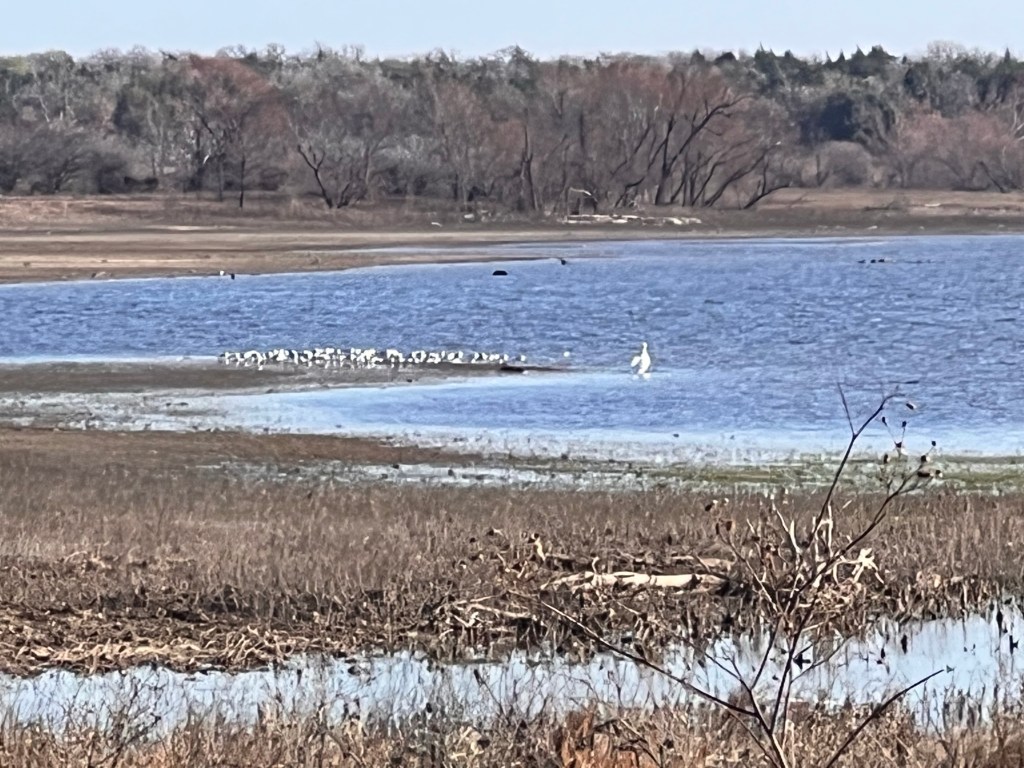 By the way, the sandy outcropping where the gulls and pelicans were also had other cool birds. I saw greater yellowlegs, killdeer, grebes, and two beautiful white birds with black and white wings. They had a black bill and long legs. I swear they are American avocets, though they aren’t supposed to be here right now. I did check, and they have been seen here, so I’m not imagining things.
