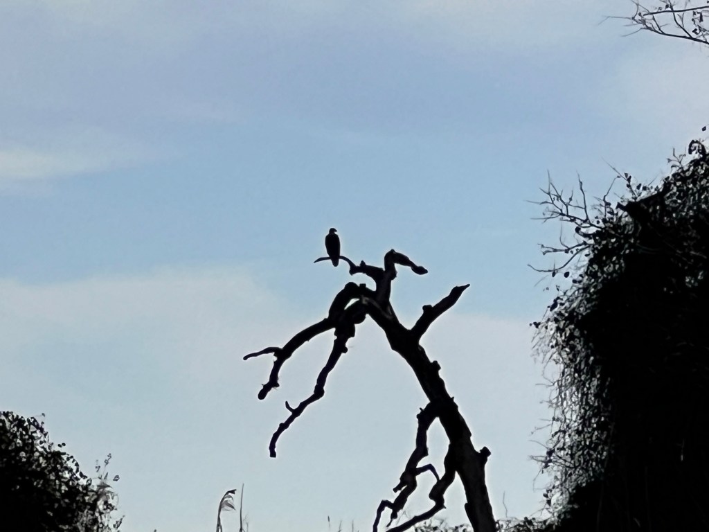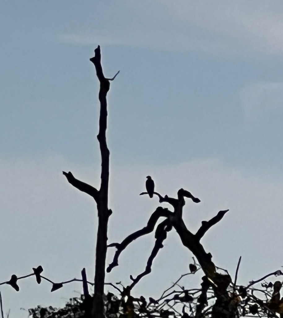 I went out early in the morning and was thrilled to see two different bald eagles in trees. It turns out the local high school mascot is the eagles, since there are lots at this lake. It’s always great to see them. And as I went on the walk, I was greeted by additional raptors. I first saw a peregrine falcon, who came out even blurrier than the eagles did, then another merlin showed up. I got to see it really well with the binoculars, even though my photos aren’t great.