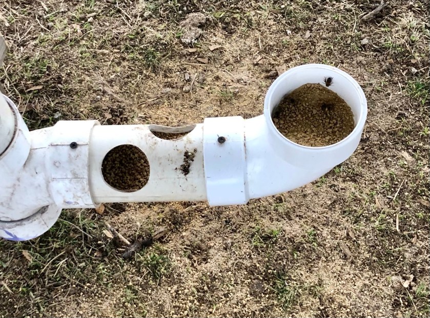 I can’t make the grass around the coop die and the big mower can’t reach it. I thought putting the food container in that space would be useful, but…ants came.