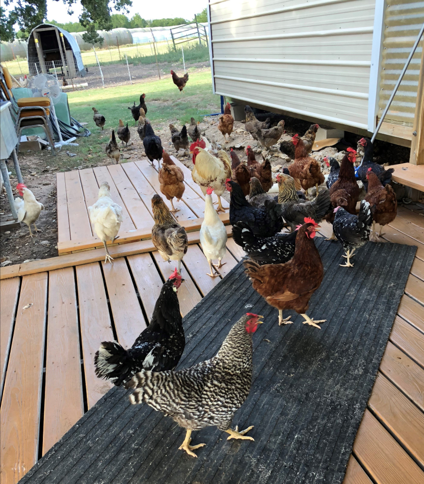 It just makes me happy watching them explore the area and down massive quantities of insects. We always seem to have plenty more, so I don’t think they’re ruining the ecology out here (it’s mostly ruined by herbicides the tenant ranchers put on the fields, anyway).