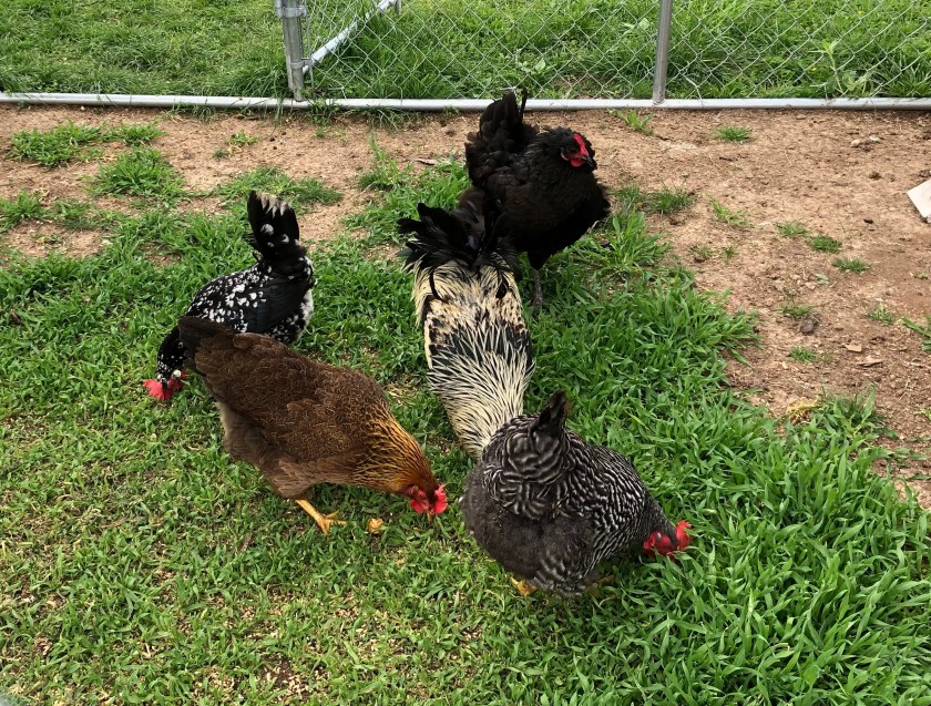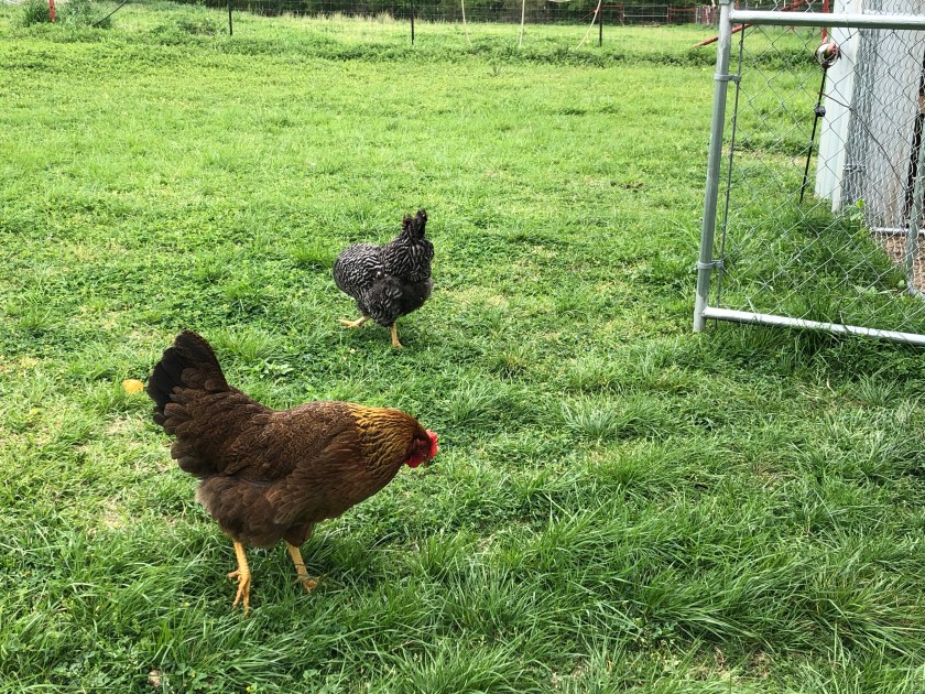 Oh, those dang chickens are always up to something. I think I get the whole chicken-mama thing figured out, and they come up with a way to stump me. Some things are good! For example, I am getting four eggs many days, out of five hens. I’m sure I’d have five, if I could find where the hell Bertie Lee is laying her eggs now. I should have just let her keep laying in that corner of the garage; at least I could find them, then. It’s like a never-ending Easter egg hunt!