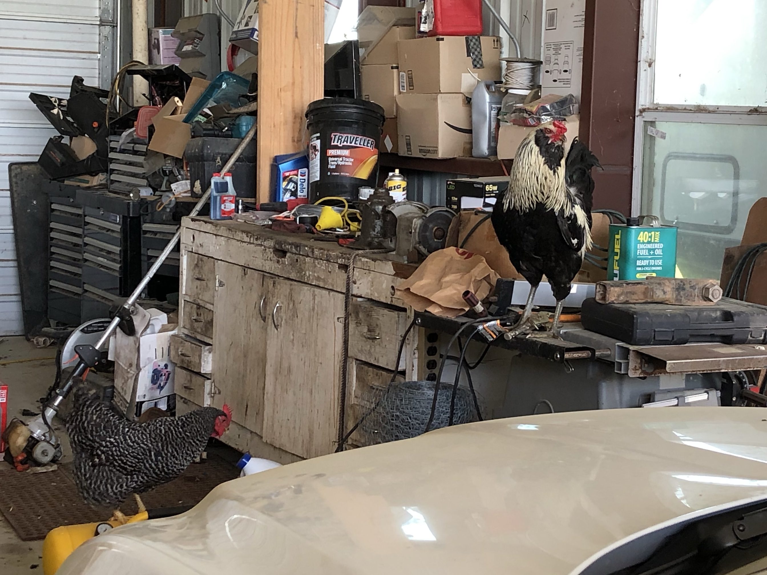 I am no match for the mind of a domestic fowl, that’s for sure. I’m glad they like the garage, sort of, but would prefer to keep the cars and tools free of bird poop.