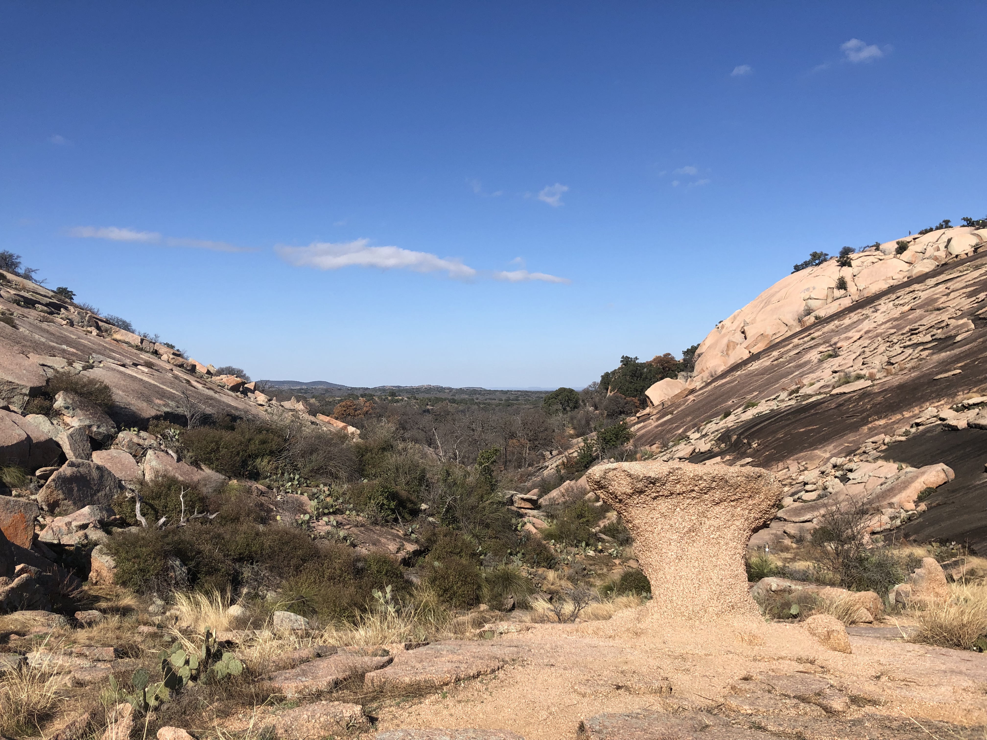 Yesterday, we drove out to Enchanted Rock State Natural Area, a place you should also go, if you’re visiting the middle of Texas. It really is fascinating, especially in the spring or after a rain (due to flowers and little pools of water with tiny shrimp in them).