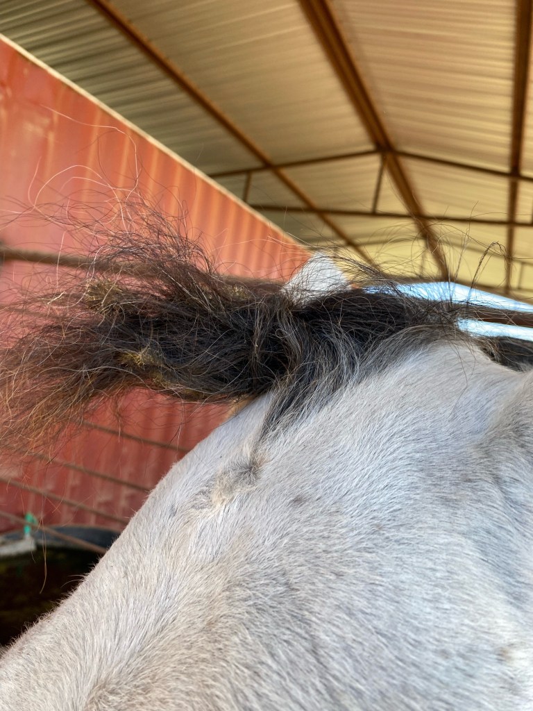 I finally got all the horses cleaned up in between body work and the hoof trimming. Everybody got their manes and tails cleaned up, which some enjoyed more than others. The best part was seeing how happy Mabel was to get all brushed and prettified. She’s come so far.