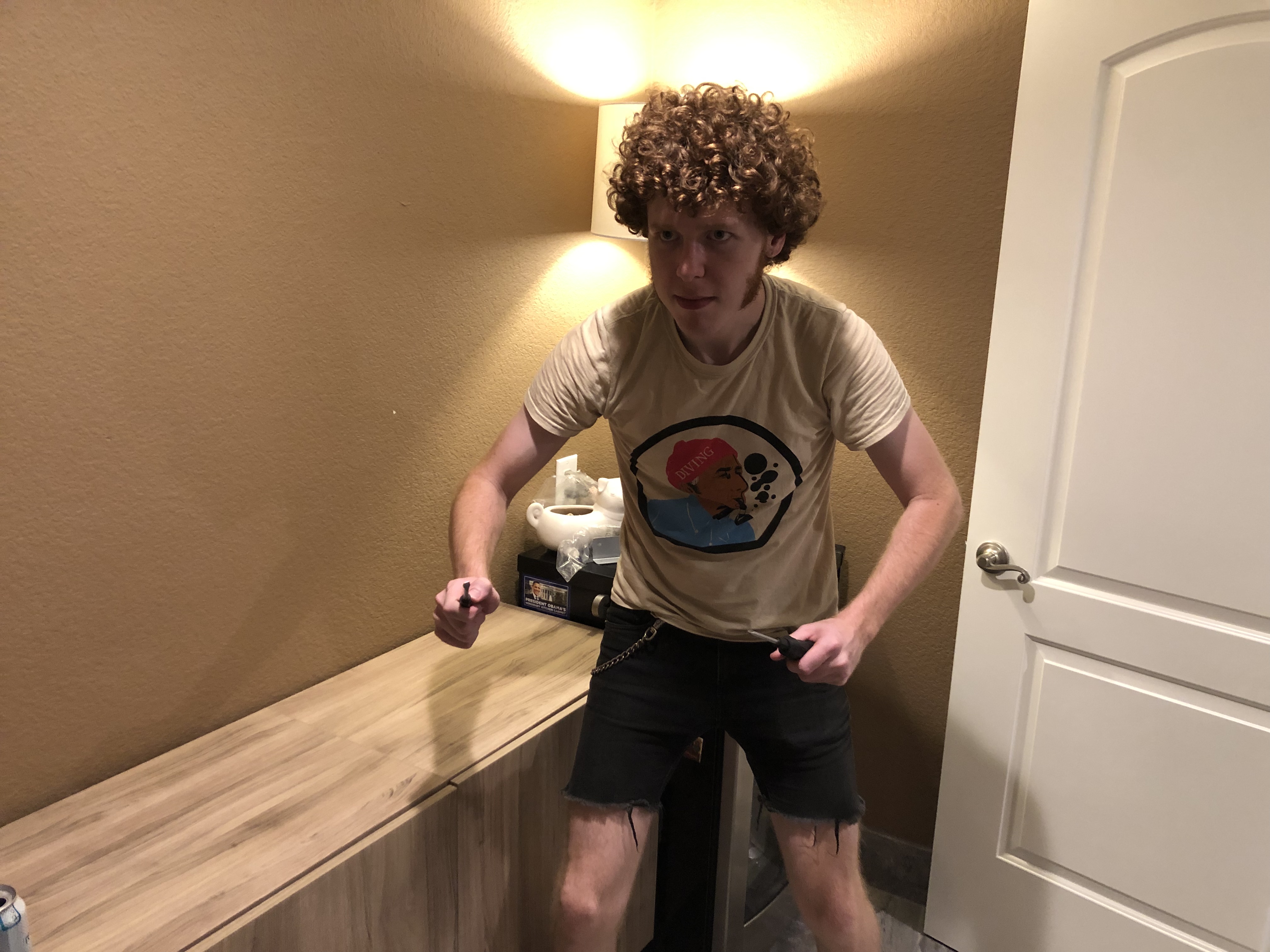 Earlier today, I’d cleaned the front porch and started repotting my Norfolk Island pine. I’m glad my son came, because he helped me with the potting soil. I hope the plant perks up.