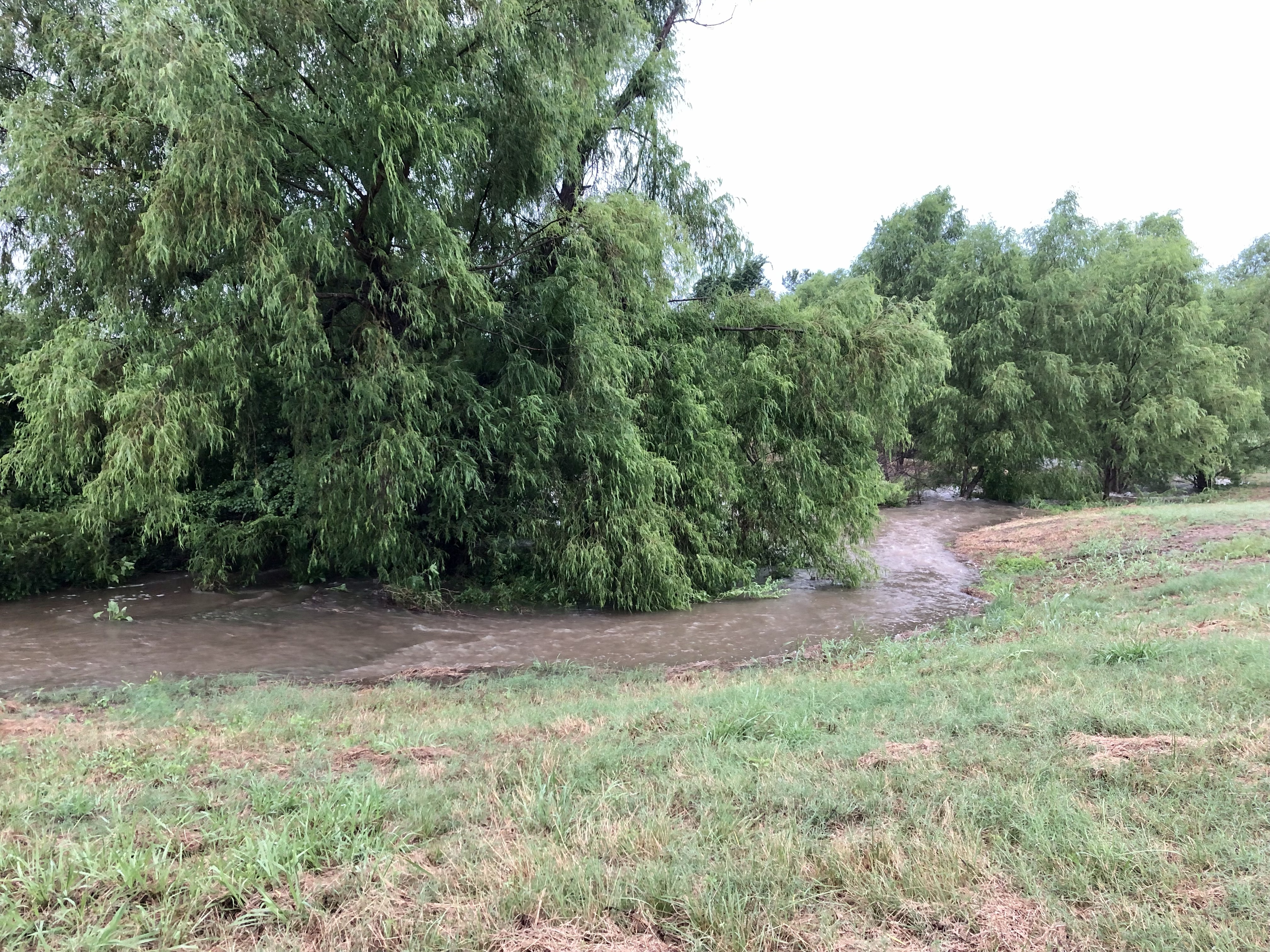 The water was even flowing across the road. Eek.