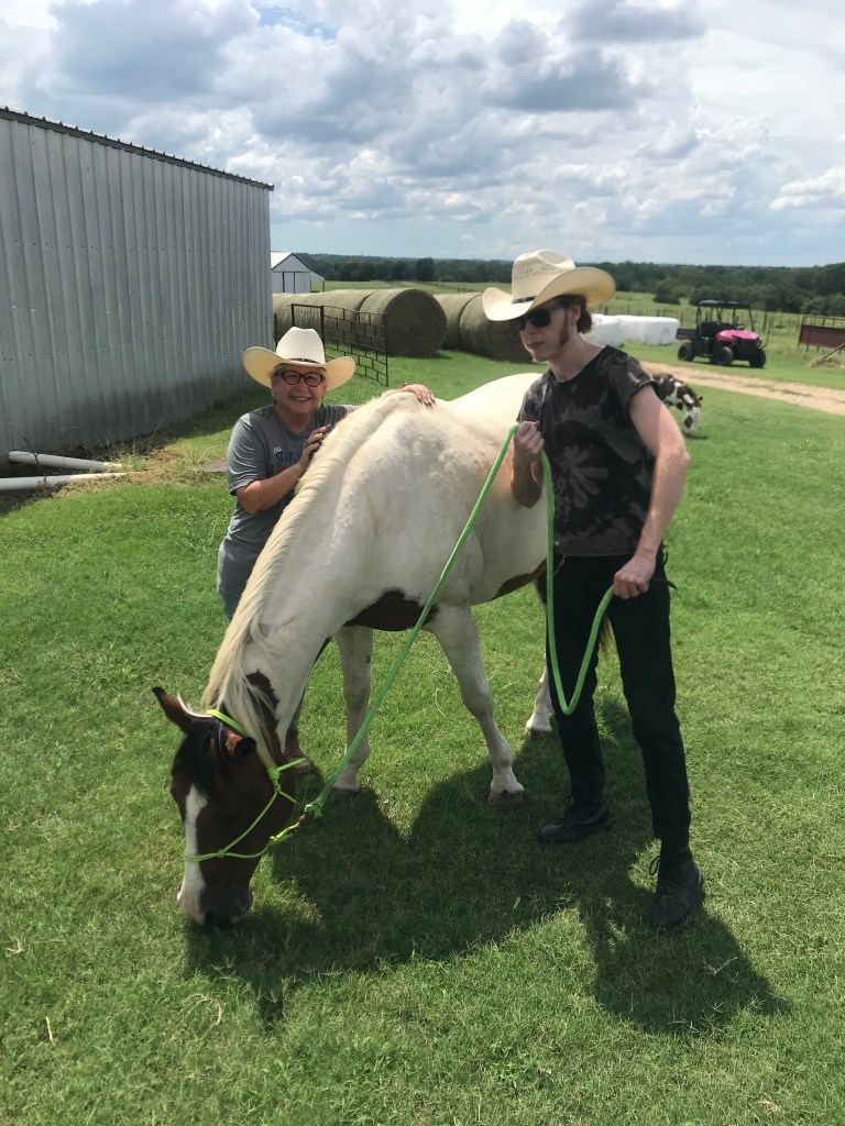 After that, my son got to walk Apache, stop him, and walk him in a circle. Apache really wanted to eat grass, but he begrudgingly complied. We were too hot to force things (oh, the humidity!).