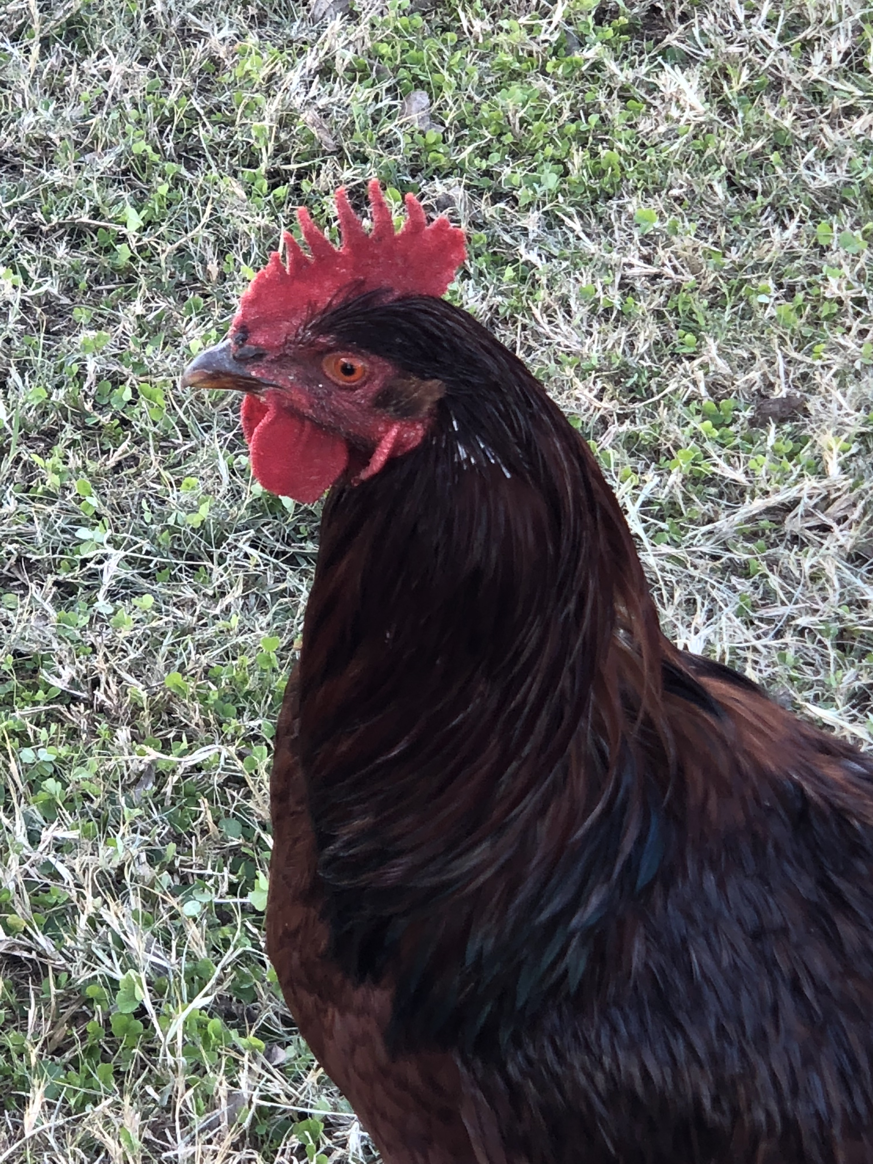 We were joined by one of our two remaining roosters, Big Red. He’s really friendly and loves sunflower seeds (and Mandi, who feeds them to him).