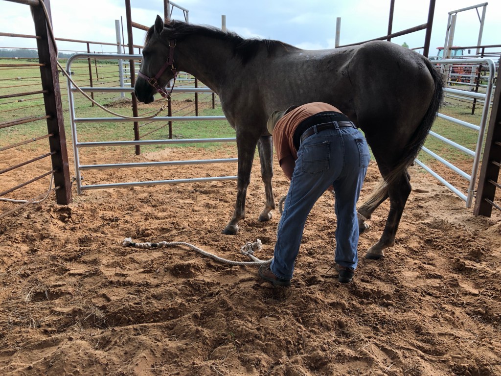 I’ve talked before about my concerns about my 3-year-old colt, Drew, and his issues with balance. He can’t get his back feet cleaned, because he can’t stay upright on three feet long enough. And he’s fine with the front feet. And he stumbles on his back feet when he’s running. Something seems wrong.
